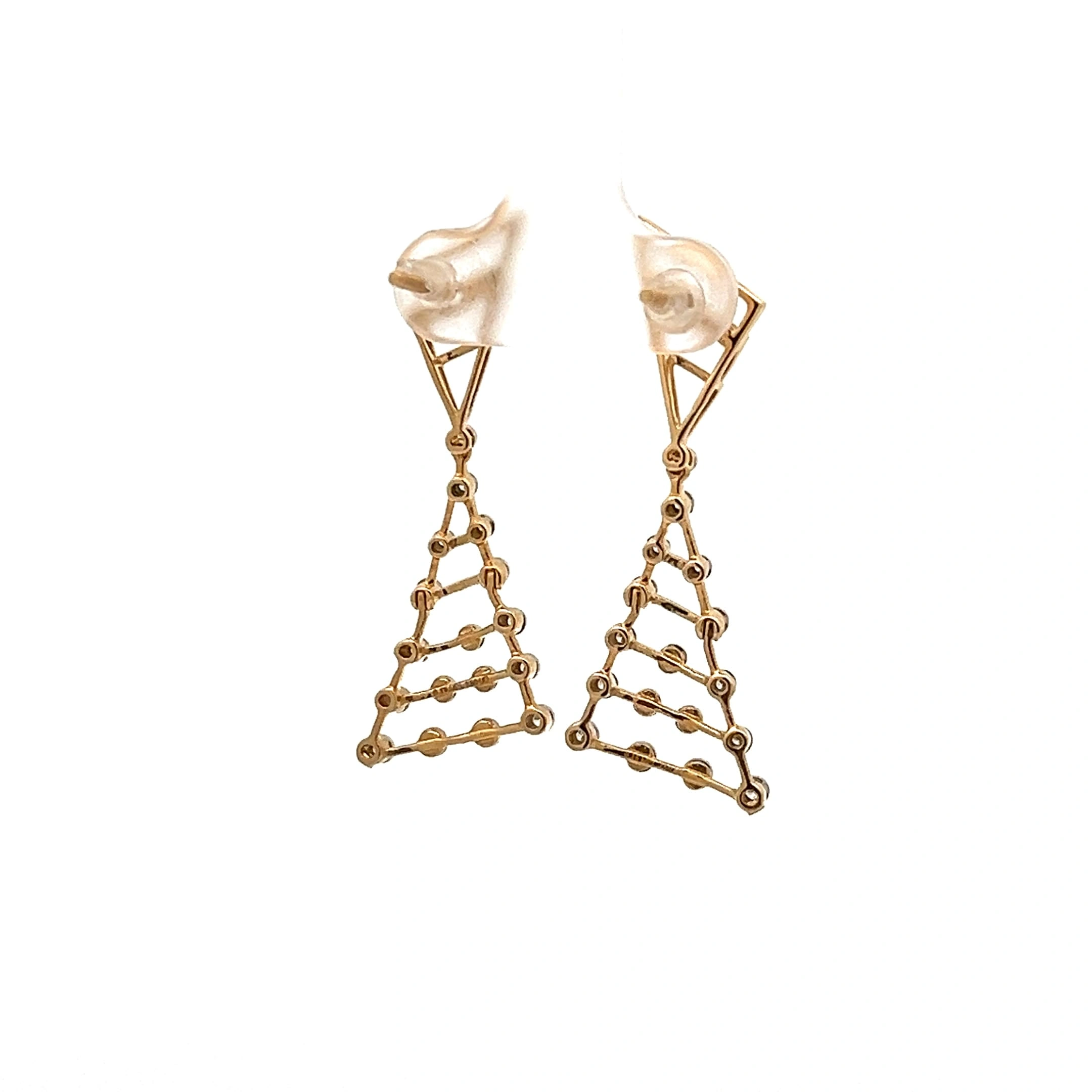 Make a dramatic geometric statement with the Dazzling Diamond Earrings, a striking pair of drop earrings set in 750 (18-karat) white gold. This bold design features an inverted triangular silhouette, meticulously filled with smaller, linked triangles crafted from diamond-set bars. The open-work structure allows light to flood the stones, creating a phenomenal sparkle. These earrings are a testament to modern artistry and precision craftsmanship, ideal for the fashion-forward individual who appreciates architectural jewellery with high-impact glamour.