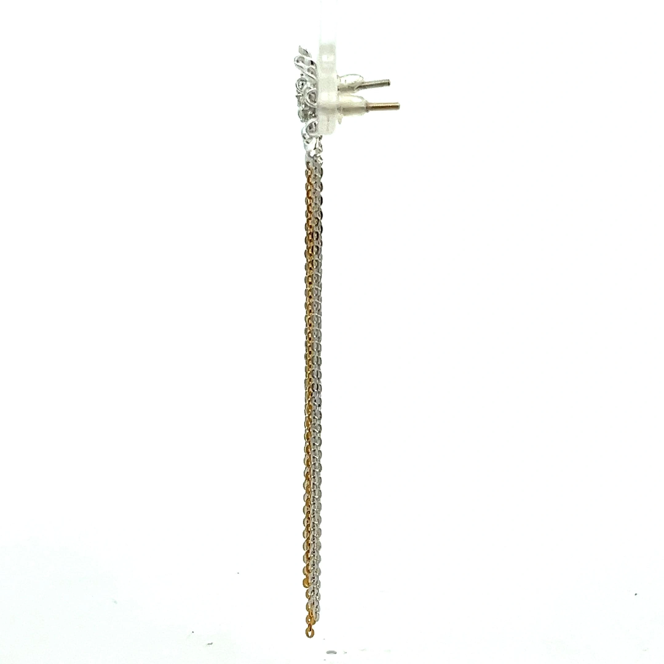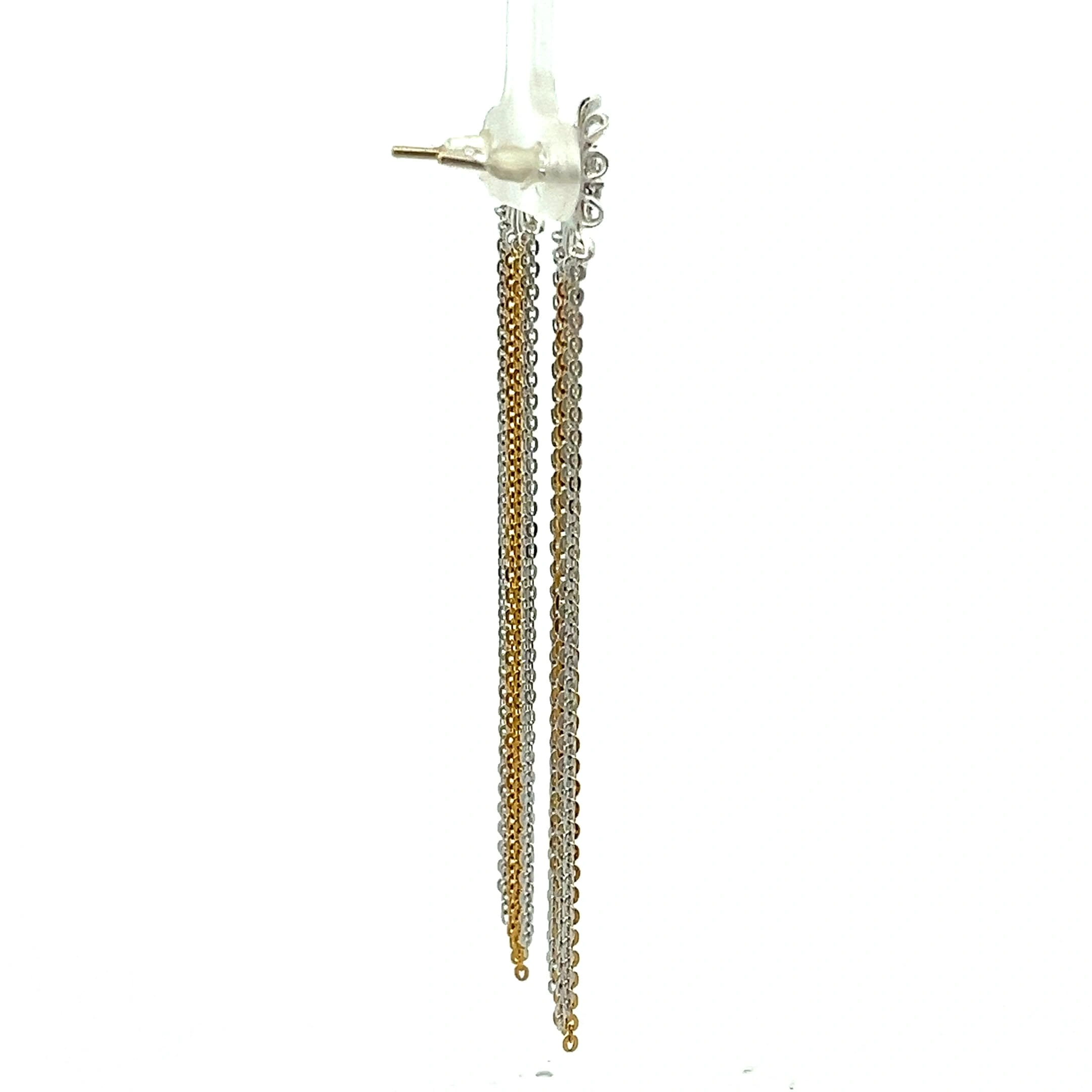 The Fringe Waterfall Earrings are the ultimate statement in contemporary elegance. Crafted from a combination of 750 (18-karat) white and yellow gold, these dramatic drop earrings feature multiple, delicate chains that cascade down the neckline like a shimmering waterfall. The use of both gold tones in the fringe adds depth and versatility, ensuring they pair beautifully with all your other jewellery. Designed for movement and maximum light reflection, they are perfect for making a sophisticated, high-fashion impact at any grand event.