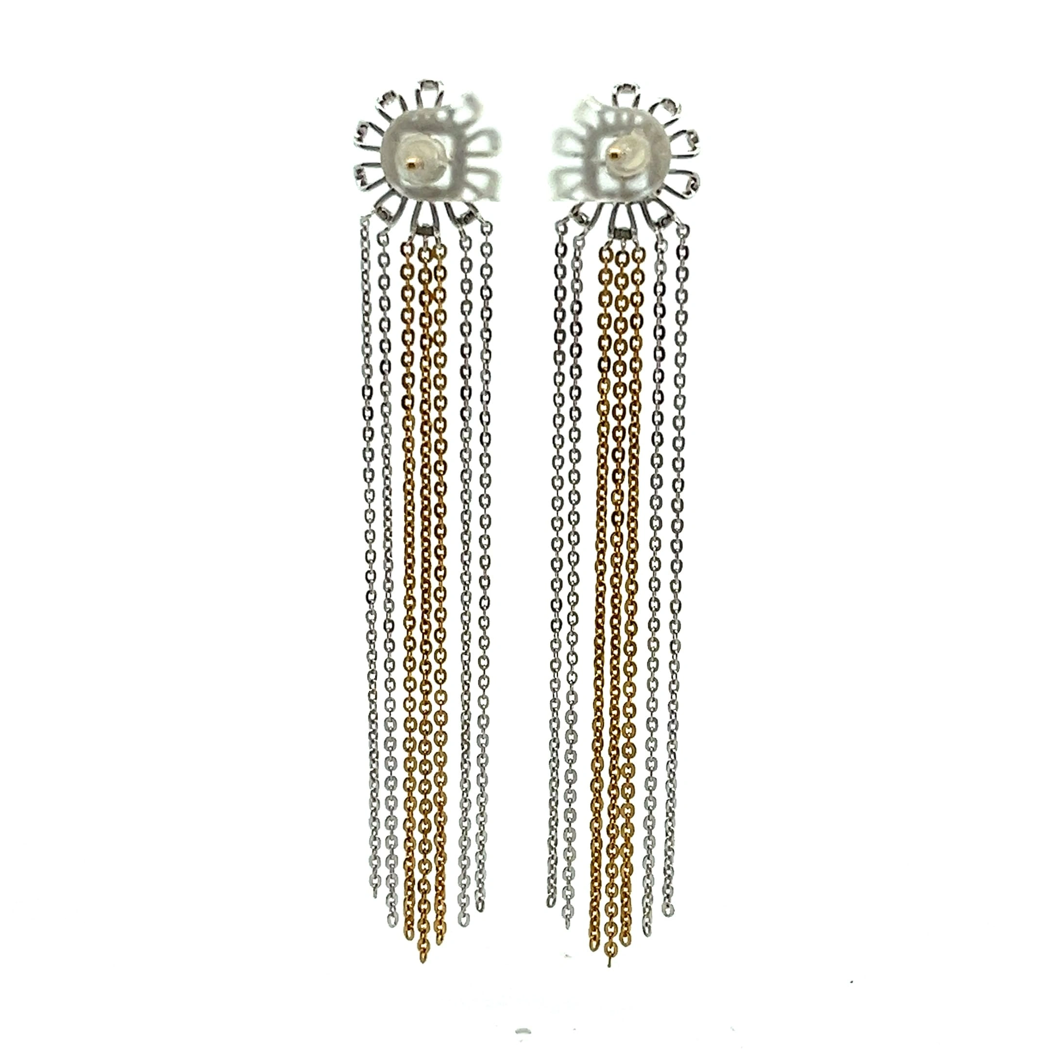 Dramatic, multi-strand fringe earrings in 18-karat (750) white and yellow gold. The Fringe Waterfall Earrings are designed for high-fashion movement and impact.
