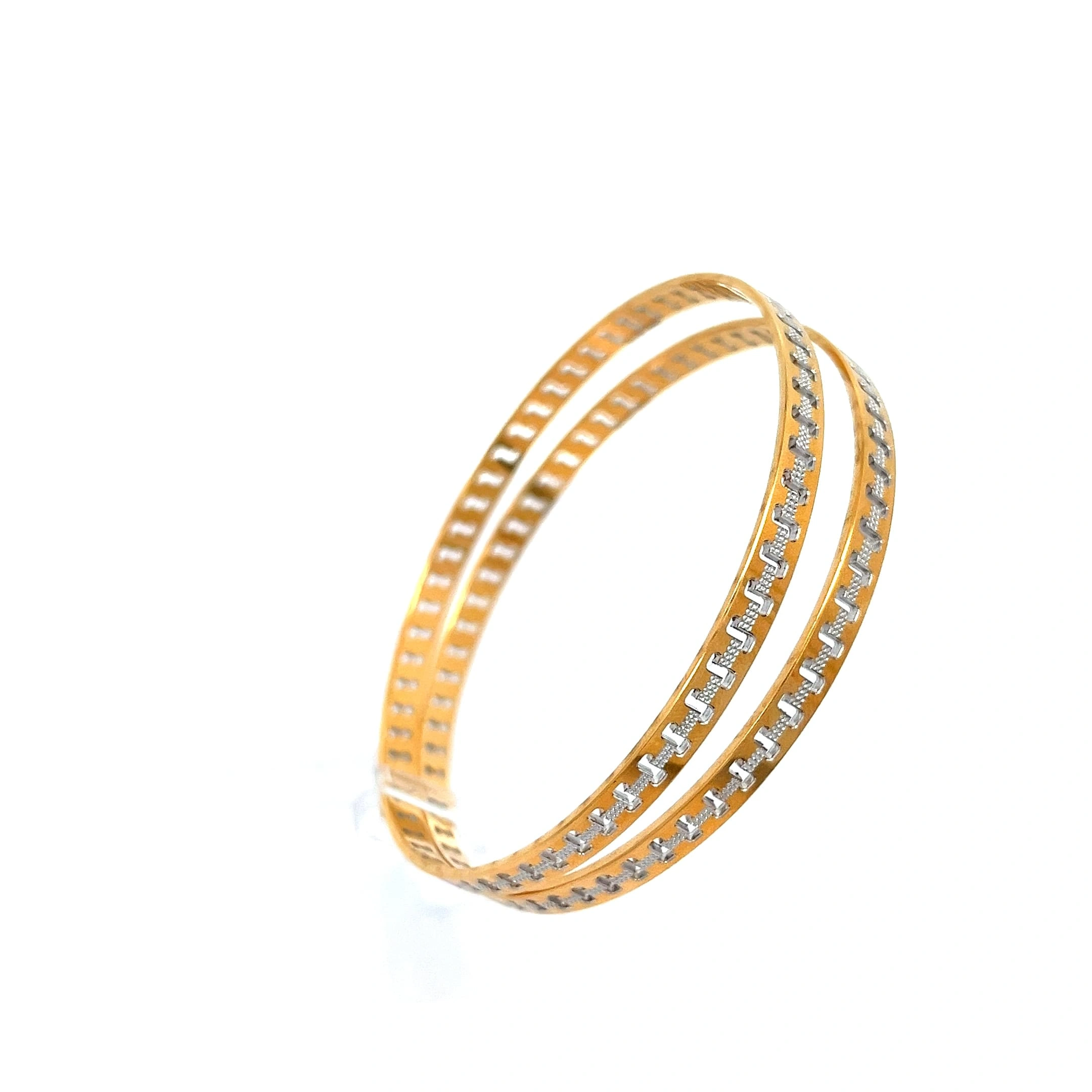 Elegant 916 gold twin-band bangle with a delicate, twisted ‘ribbon’ effect. The Ribbon Sparkle Bangle (24.63g) adds a radiant shimmer.