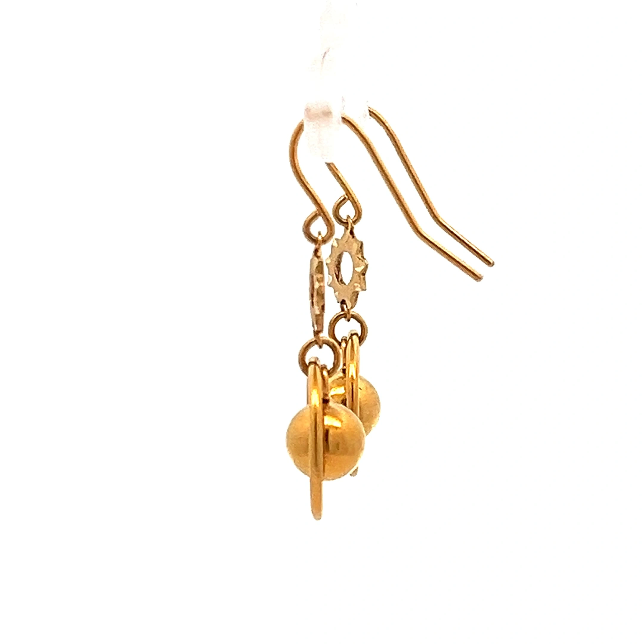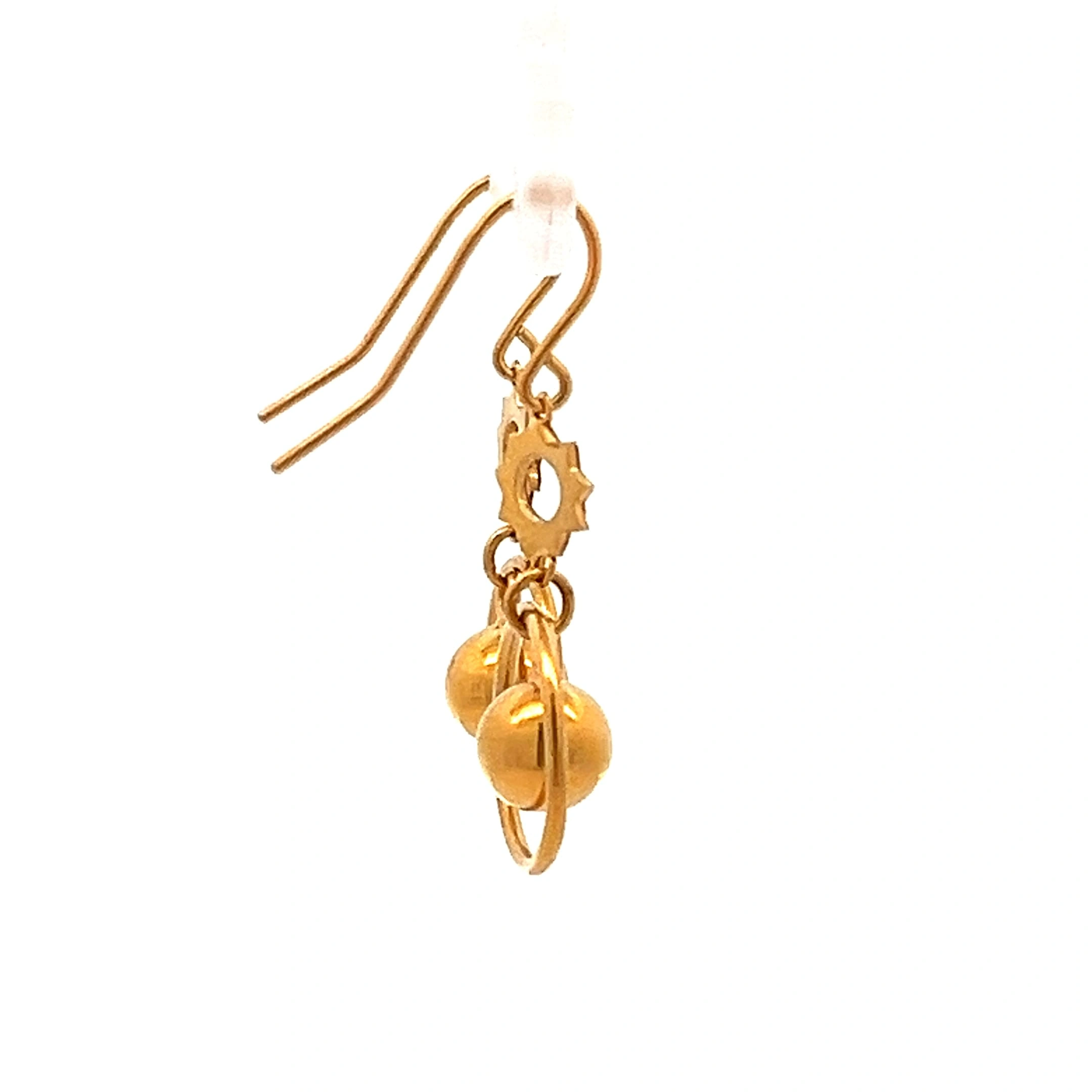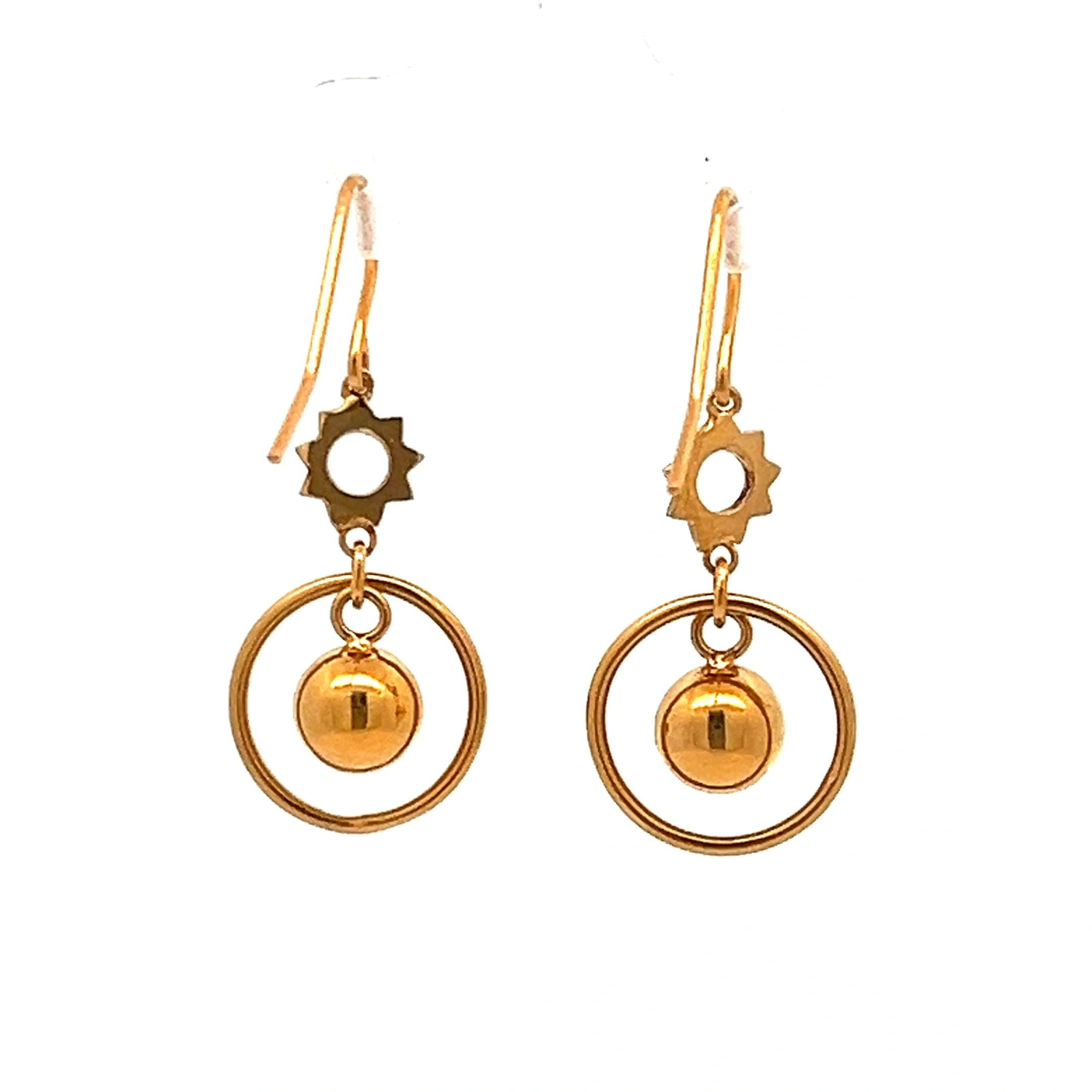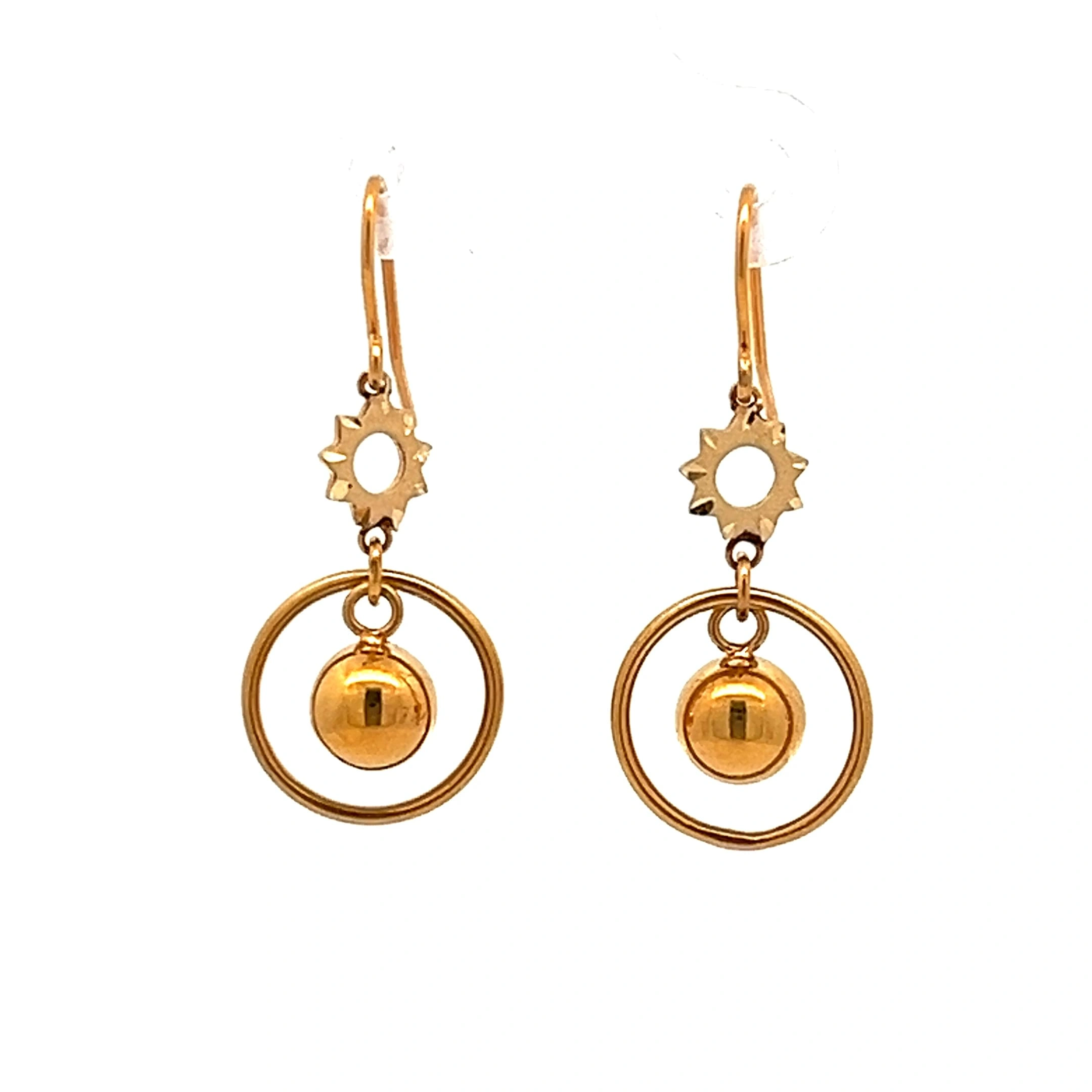 A beautiful tribute to classic design, these 916 gold earrings feature an intricate circular hoop and a delicate dangling charm, offering a touch of timeless elegance.