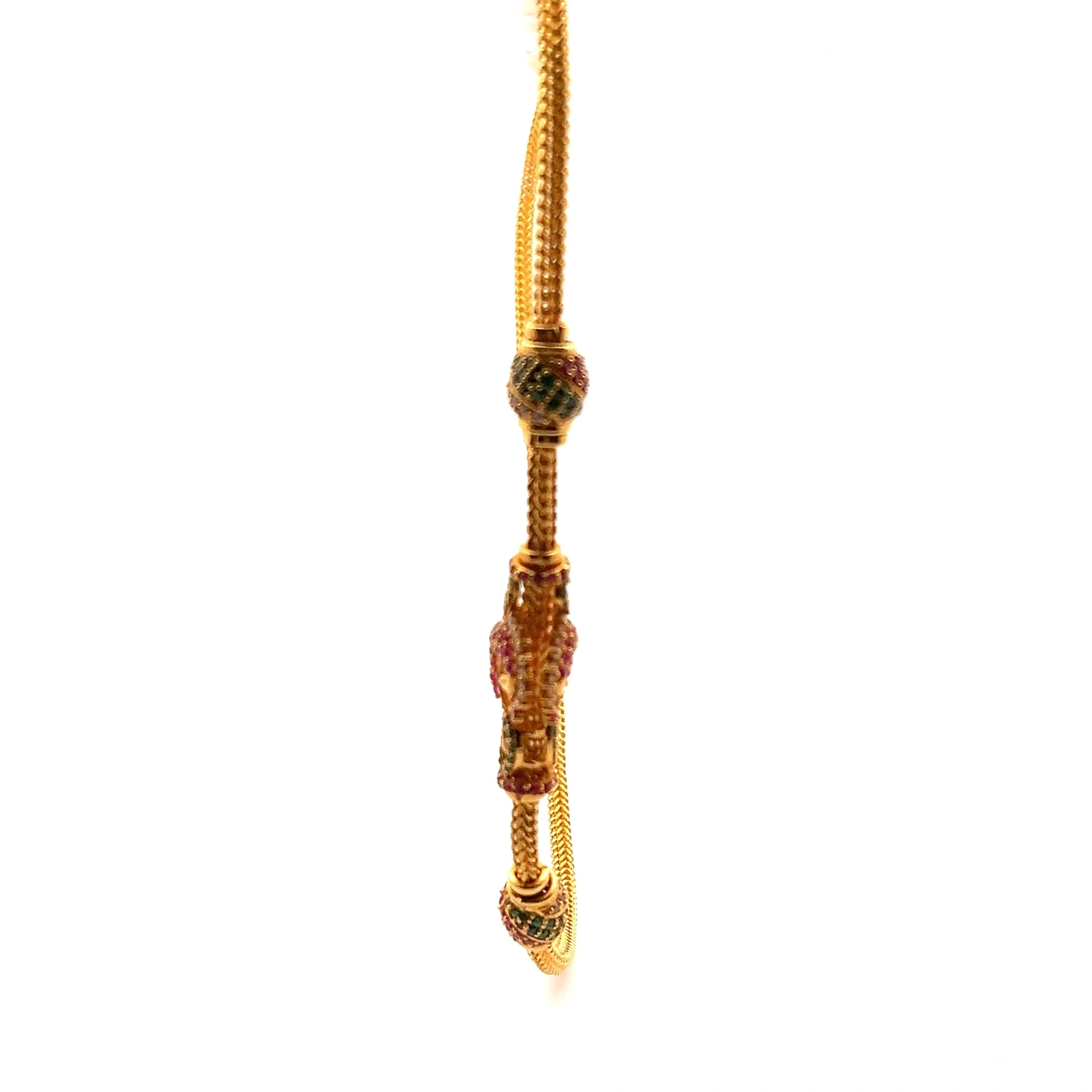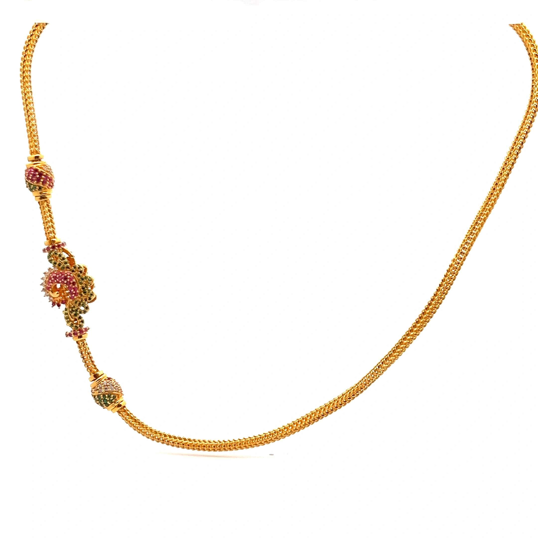 The ultimate traditional 916 gold Mugappu chain. Featuring an elaborate and very large side motif on a substantial, weighty chain, making it an undeniable focal point for grand occasions.