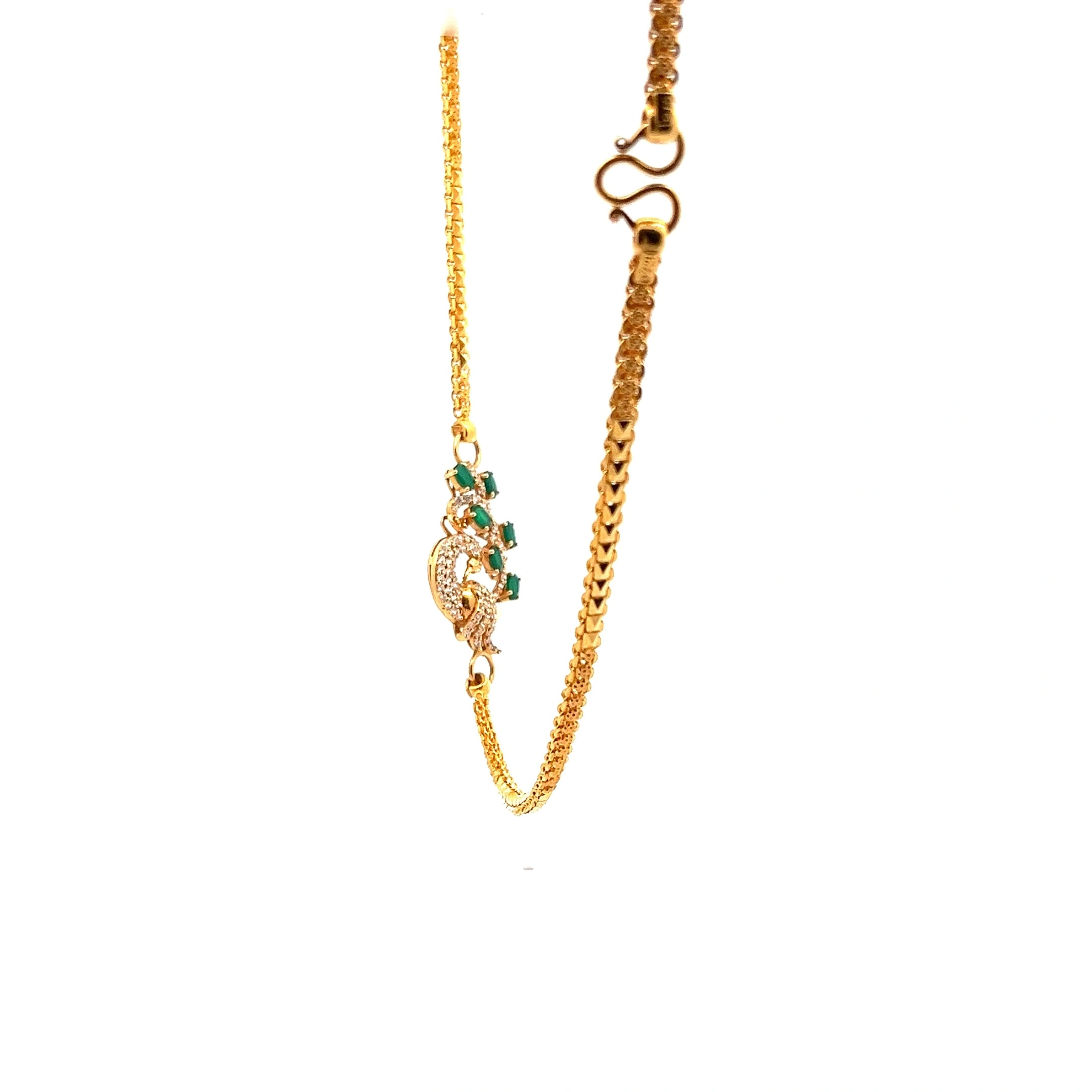 A timeless 916 gold chain necklace in the traditional Mugappu style. It features a finely detailed side motif/clasp on a gracefully weighted, polished gold chain for classic elegance.