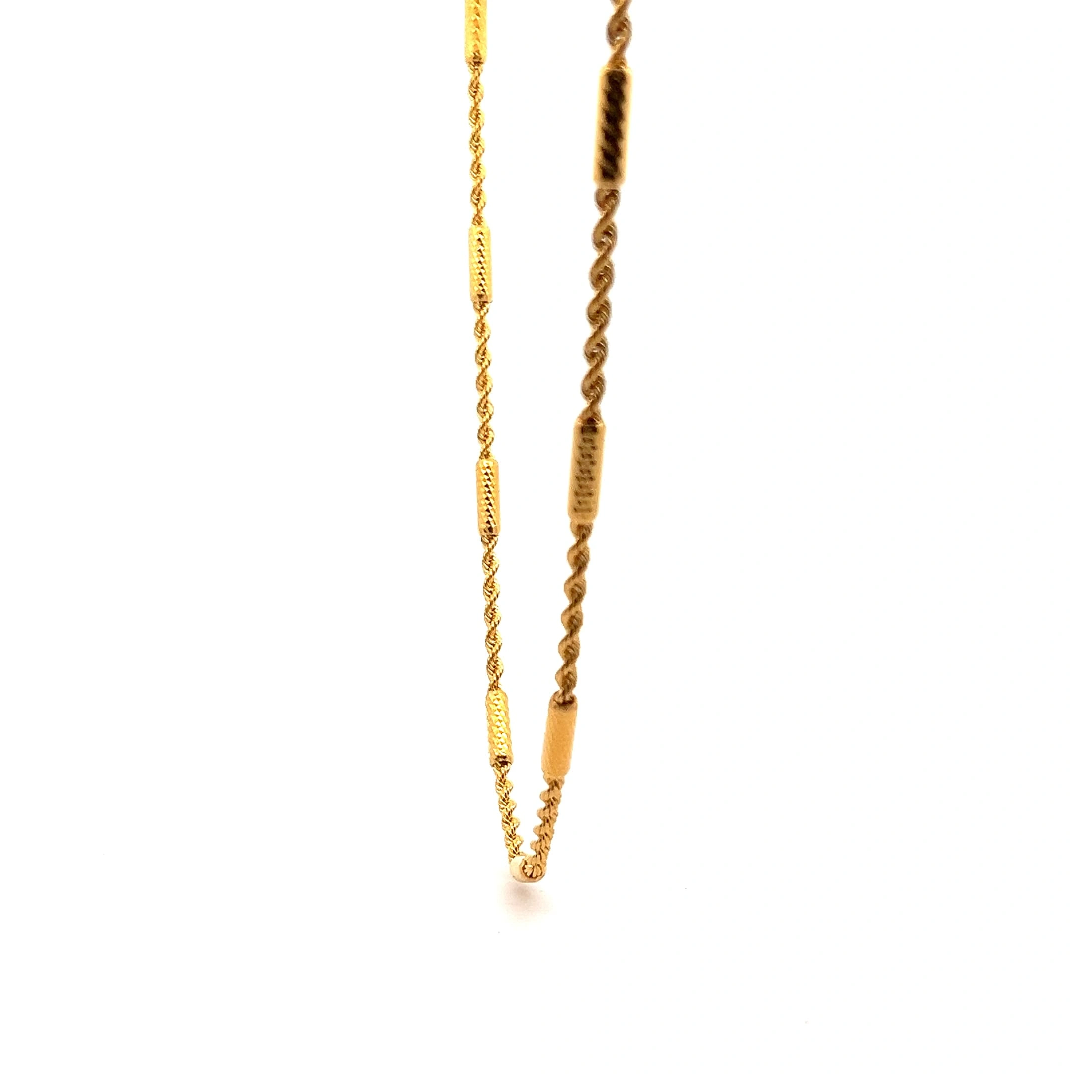 A sophisticated 916 gold chain with a finely textured surface, giving it a subtle rope-like appearance. Its unique texture catches the light beautifully, perfect for a refined look.
