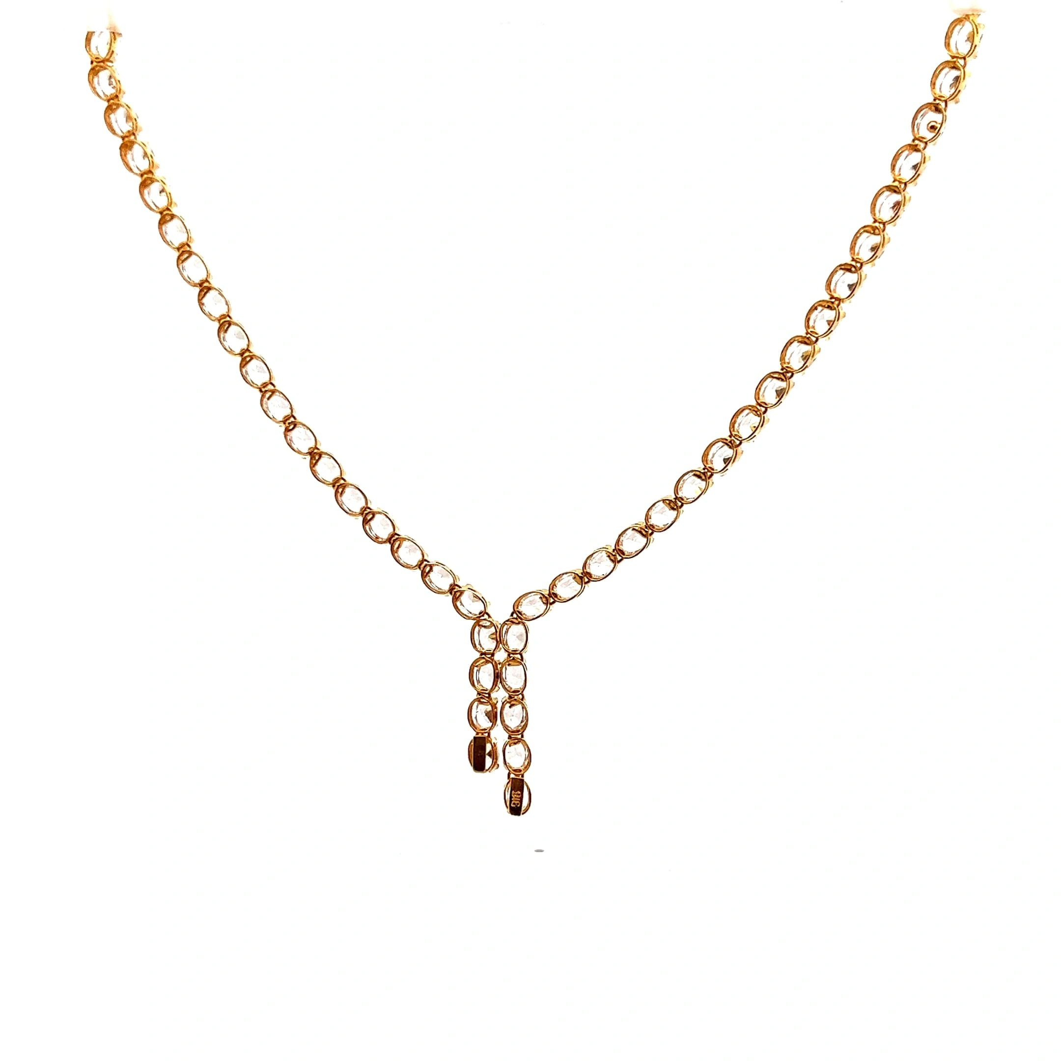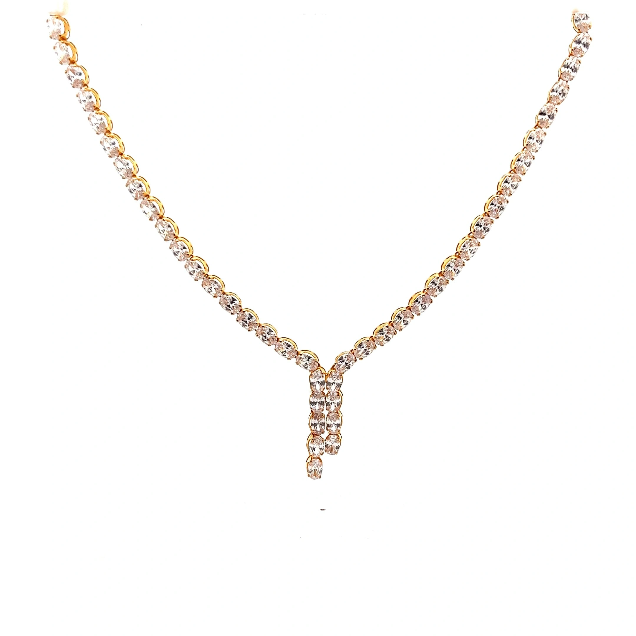 A glamorous 916 gold necklace featuring an elegant V-shape, designed with a dazzling pave-style arrangement of stones or intricate textured gold elements. An undeniable piece for evening glamour.