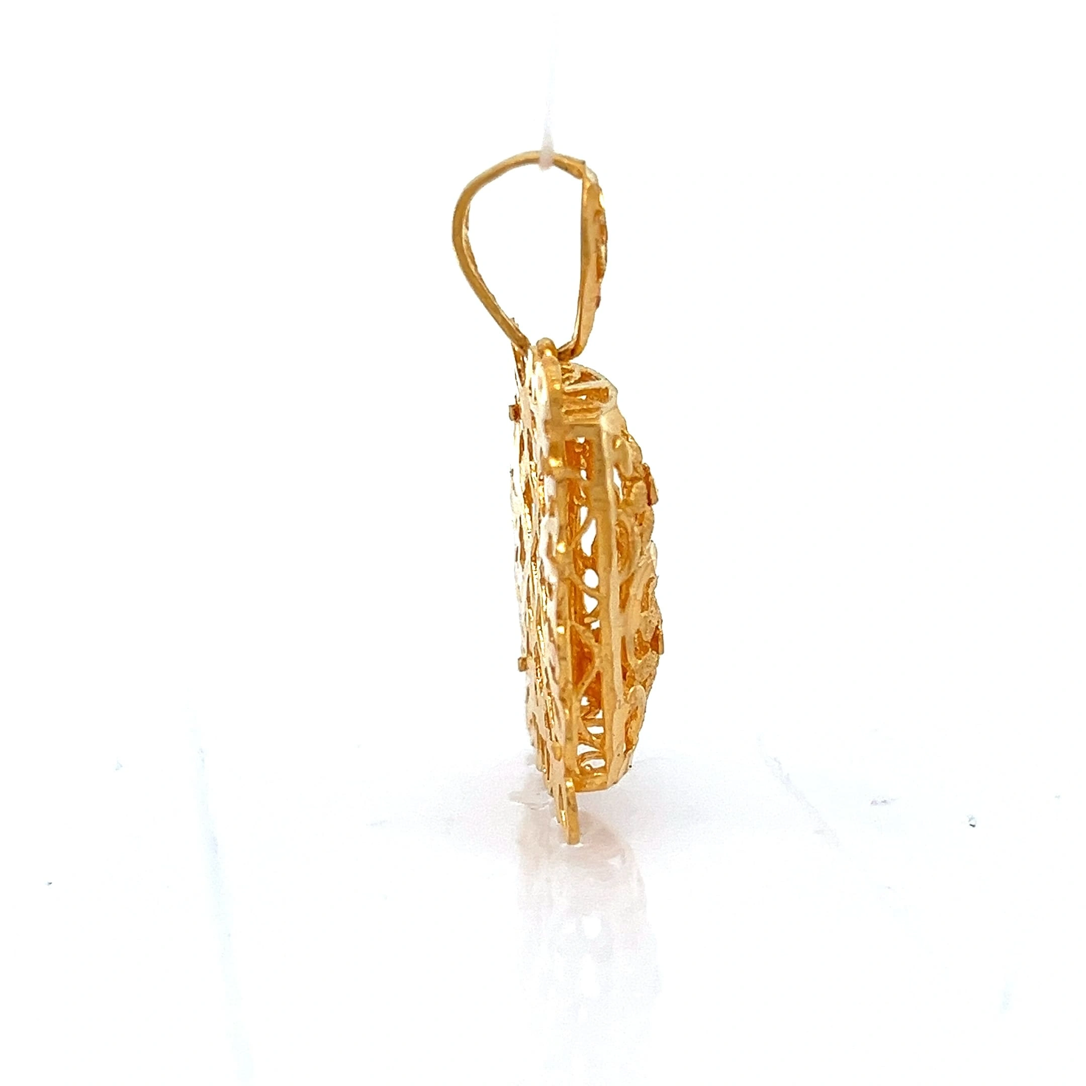 A timeless symbol of elegance and delicacy, the Eternal Lace Pendant captures the beauty of intricate design. Made in 916 gold.