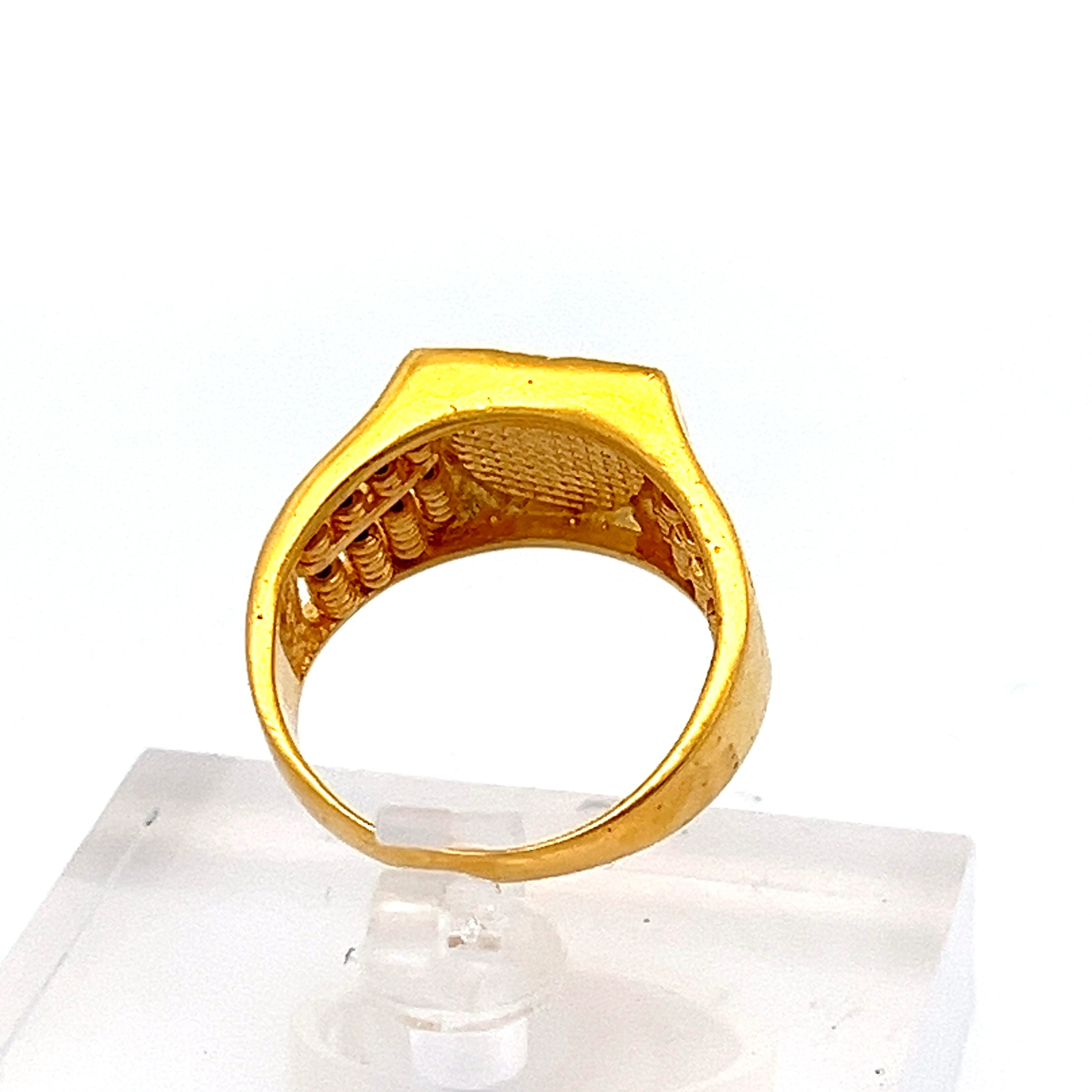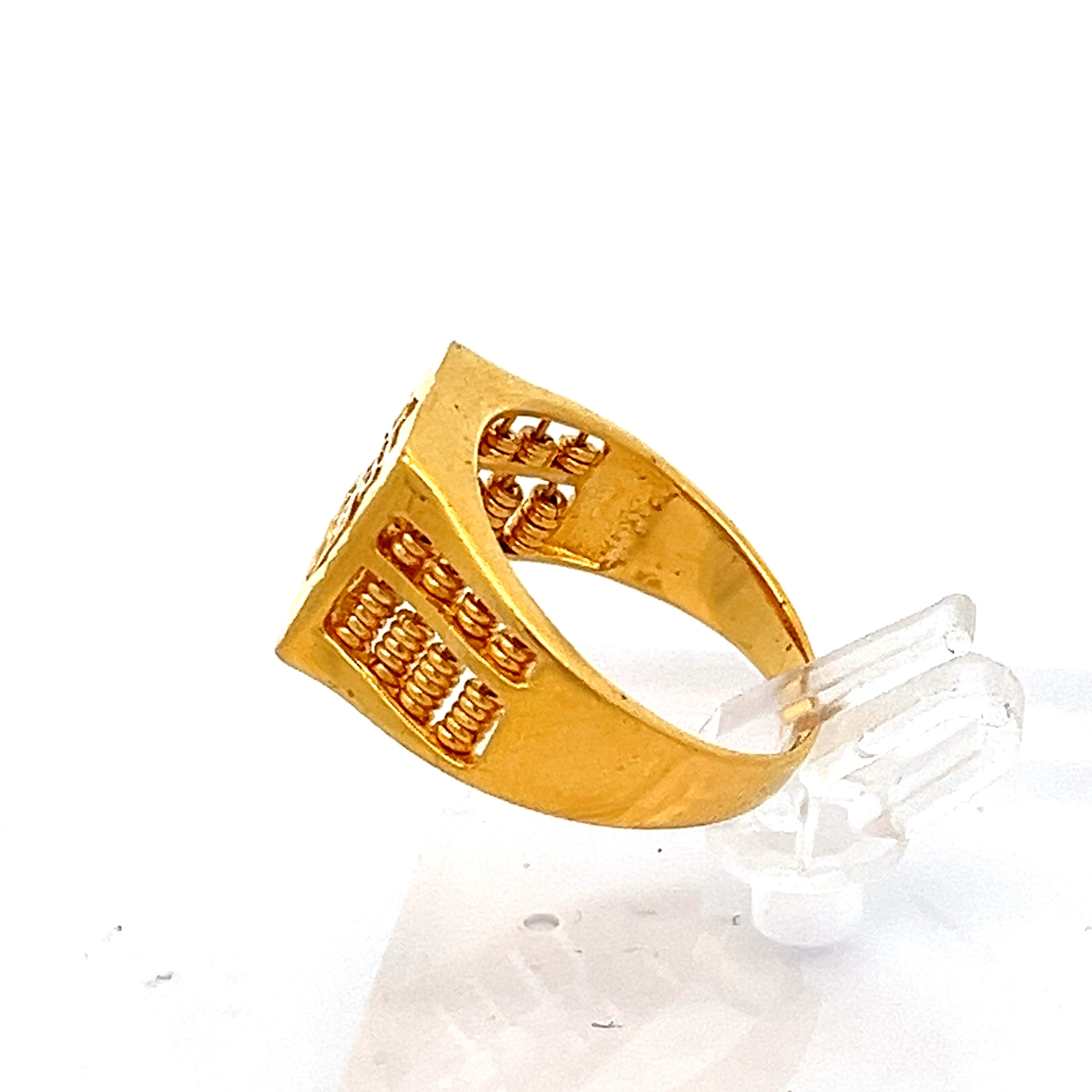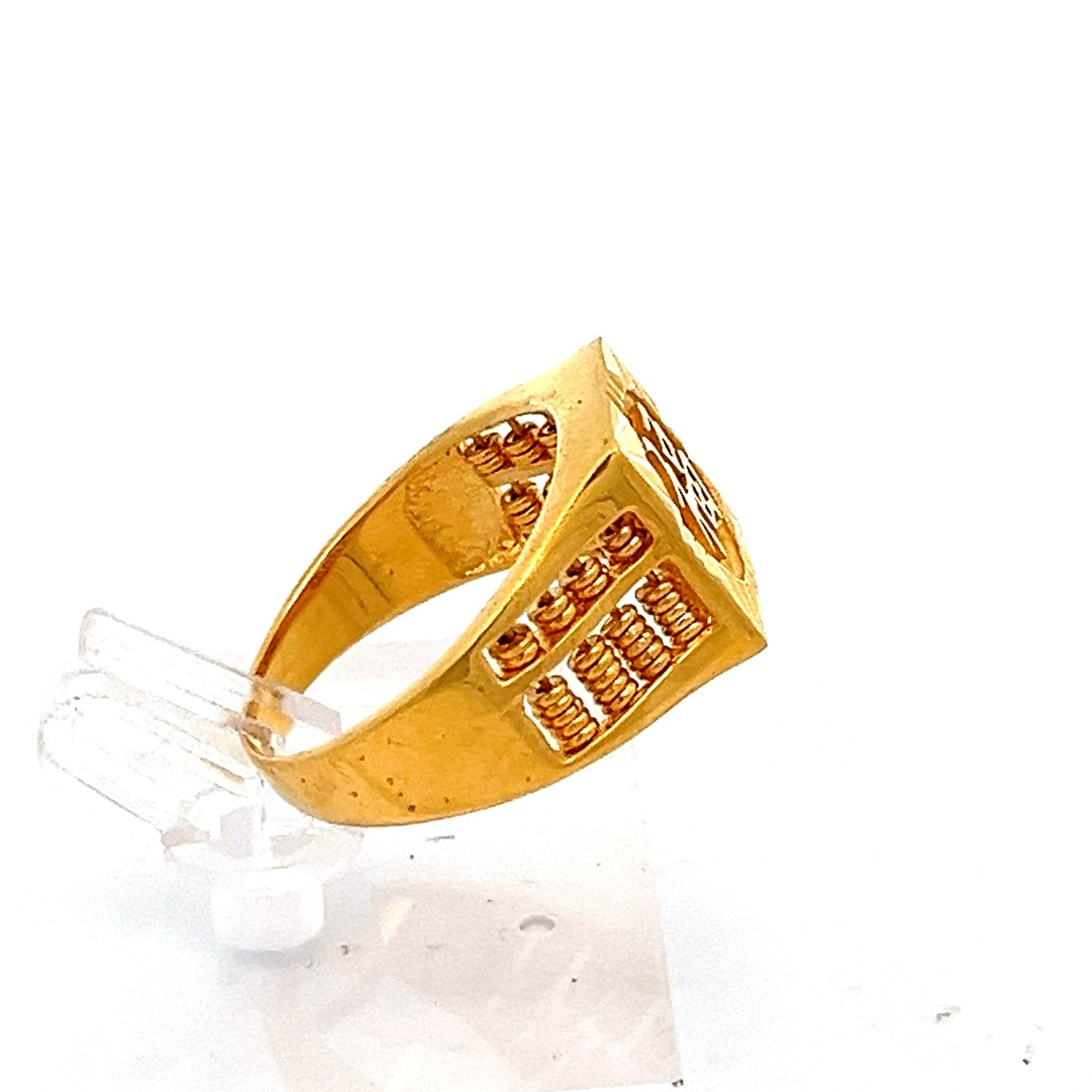 This unique 916 Gold ring features an intricate abacus design, symbolising prosperity, good fortune, and life’s blessings. Its bold design and meticulous craftsmanship make it a truly standout piece.