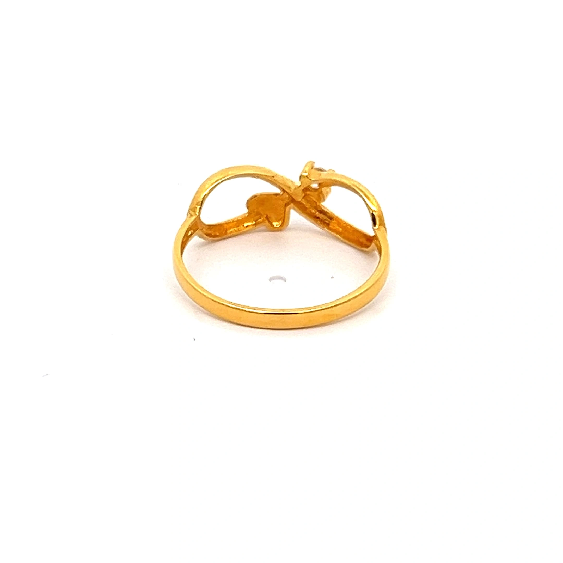 The Glimmer Ring in 916 gold features an elegant infinity design. Its flowing, lightweight form is subtly set with stones along one curve for a captivating, gentle sparkle. A perfect contemporary piece for daily sophistication.