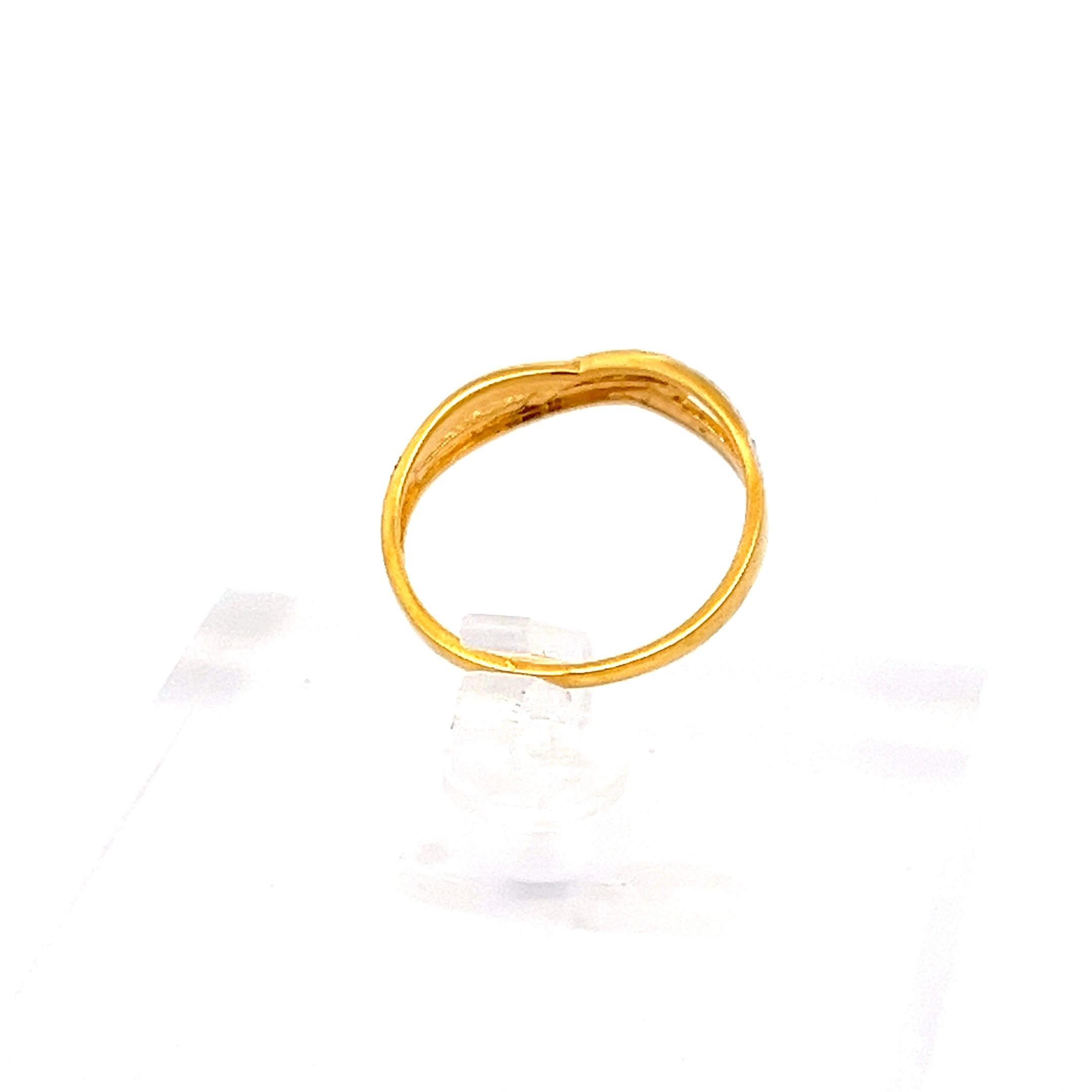 An elegant 916 gold ring with a flowing, intertwined design of yellow and white gold, inspired by ocean waves.