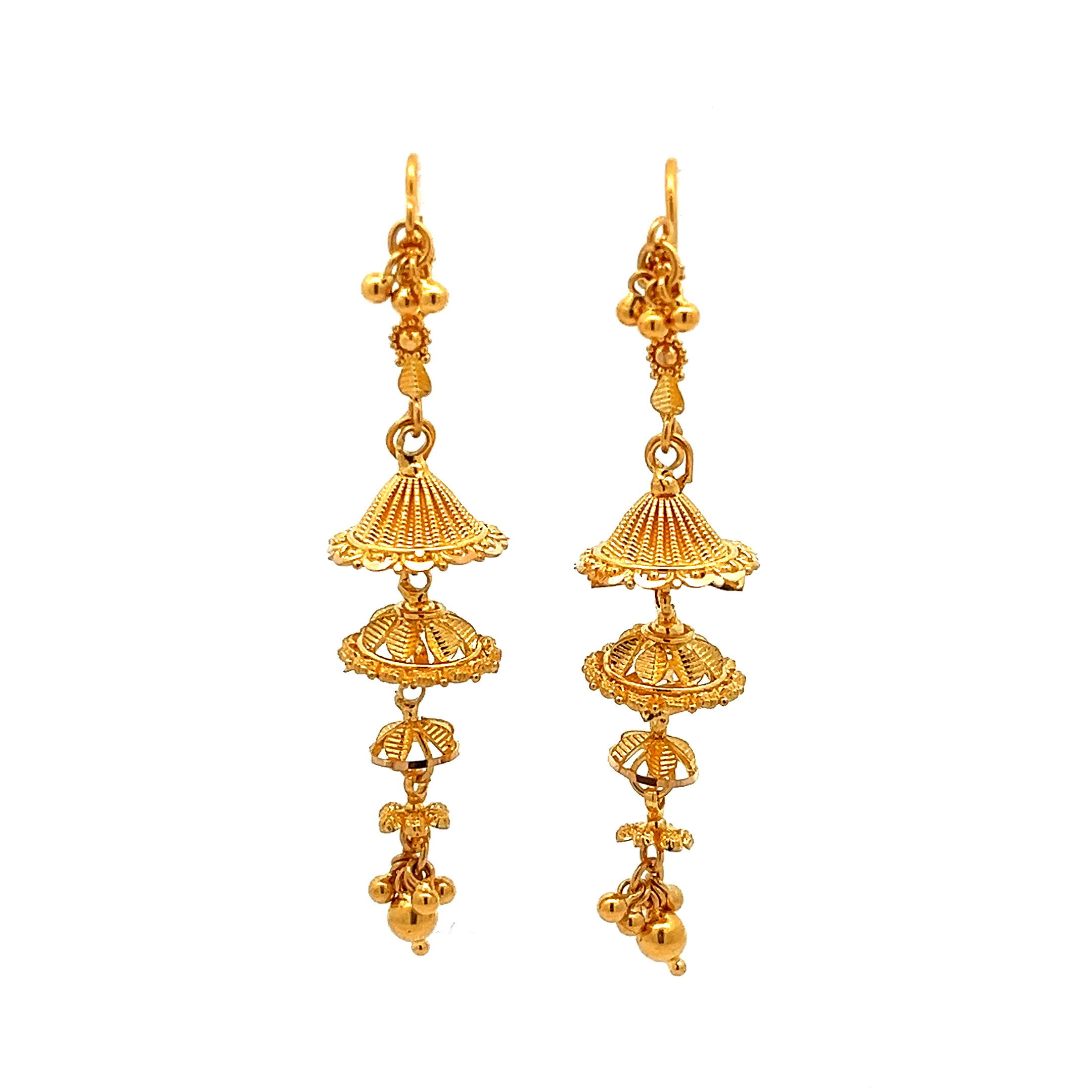 Inspired by heritage and designed for timeless sophistication, the Legacy Cascade Earrings are an exquisite representation of cultural beauty. Crafted in radiant 22k gold, these cascading earrings feature intricate tiered layers that capture the essence of traditional craftsmanship. Each element reflects a delicate balance between vintage charm and contemporary refinement, making them a versatile addition to your jewellery collection. Whether worn for festive celebrations, weddings, or grand occasions, these earrings radiate elegance, ensuring you stand out with grace and poise.