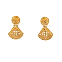 Anting-anting jatuh emas 22k yang mengagumkan seberat 90.48g, direka dengan kesenian yang rumit dan reka bentuk jelas untuk majlis-majlis besar.