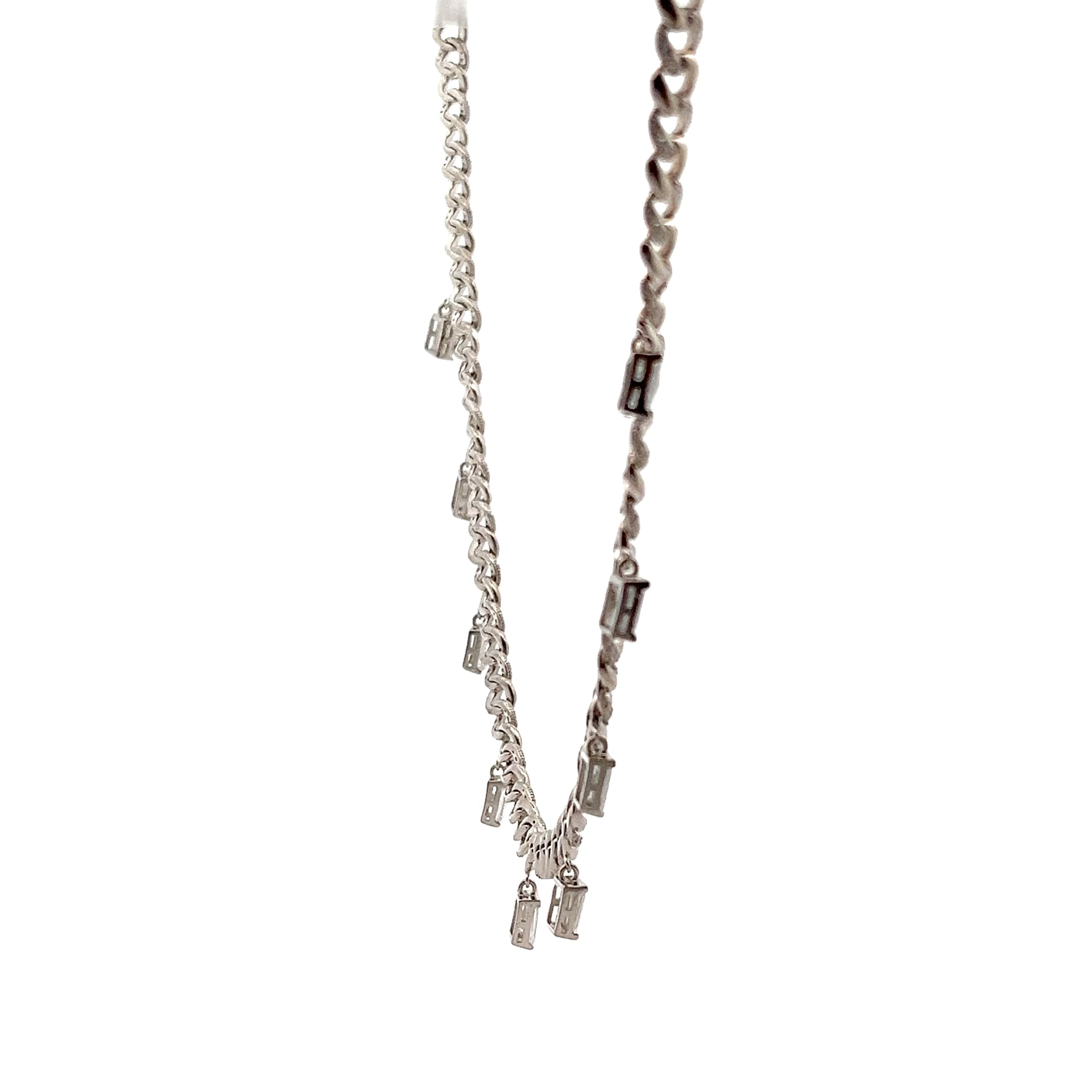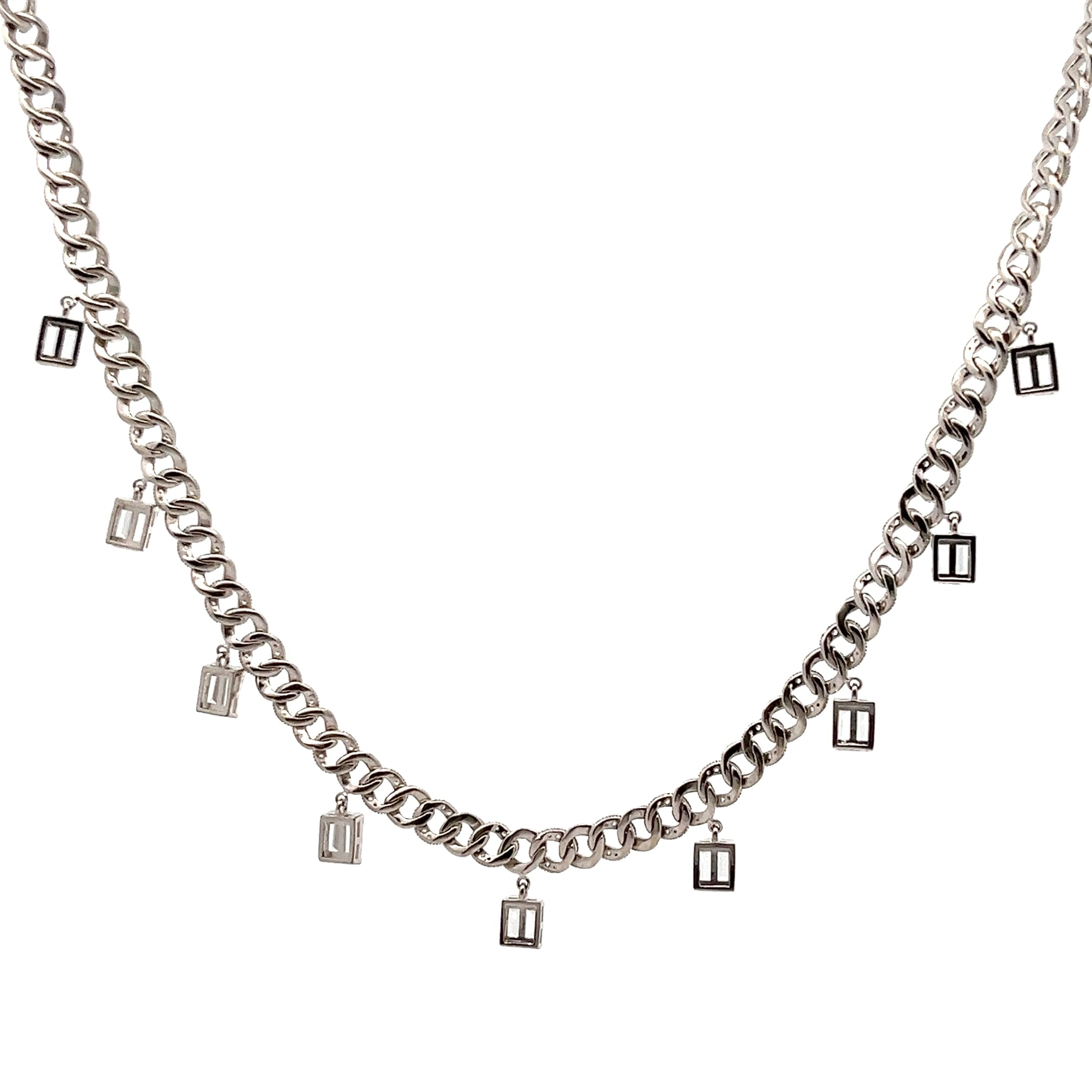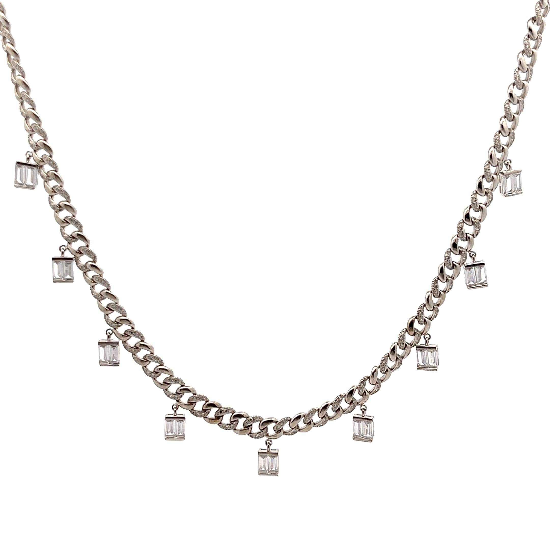 Kalung Crystal Drop menampilkan rantai tebal dengan hiasan kristal berbentuk segi empat yang berkilauan. Sesuai untuk gaya moden yang berani dan elegan.