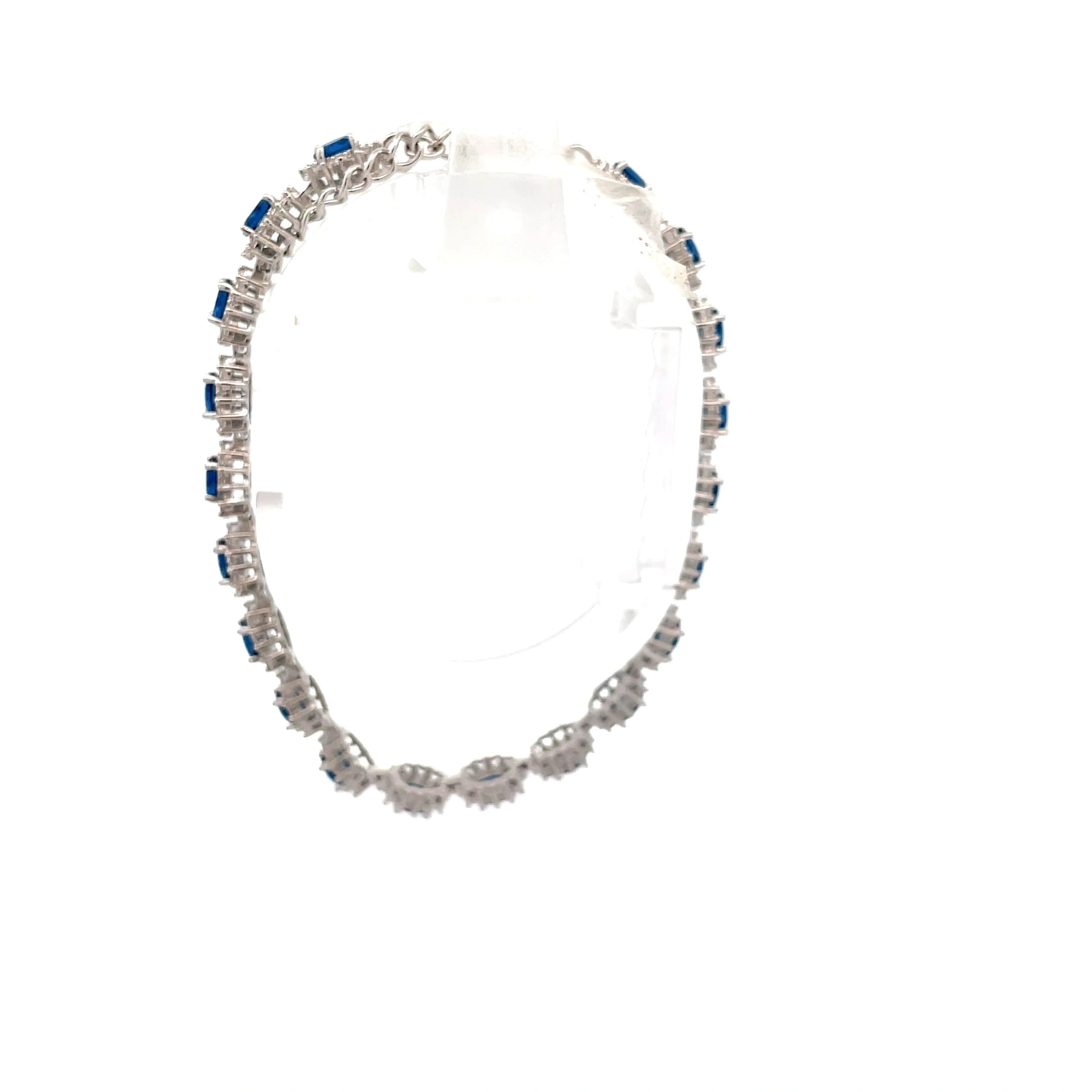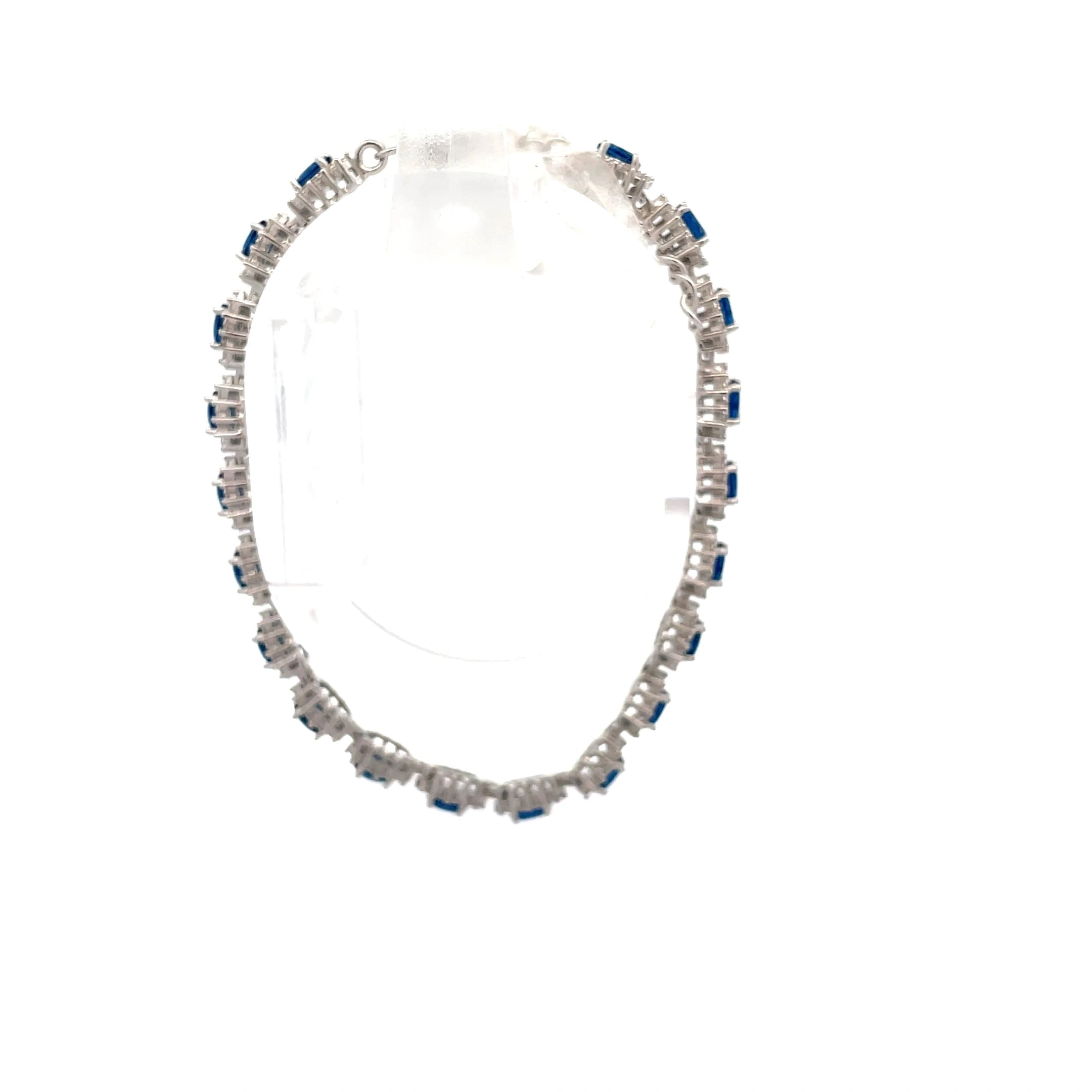 The Azure Serenity Silver Bracelet, weighing 8.56g, features a calming blue gemstone that adds elegance and serenity to your look.