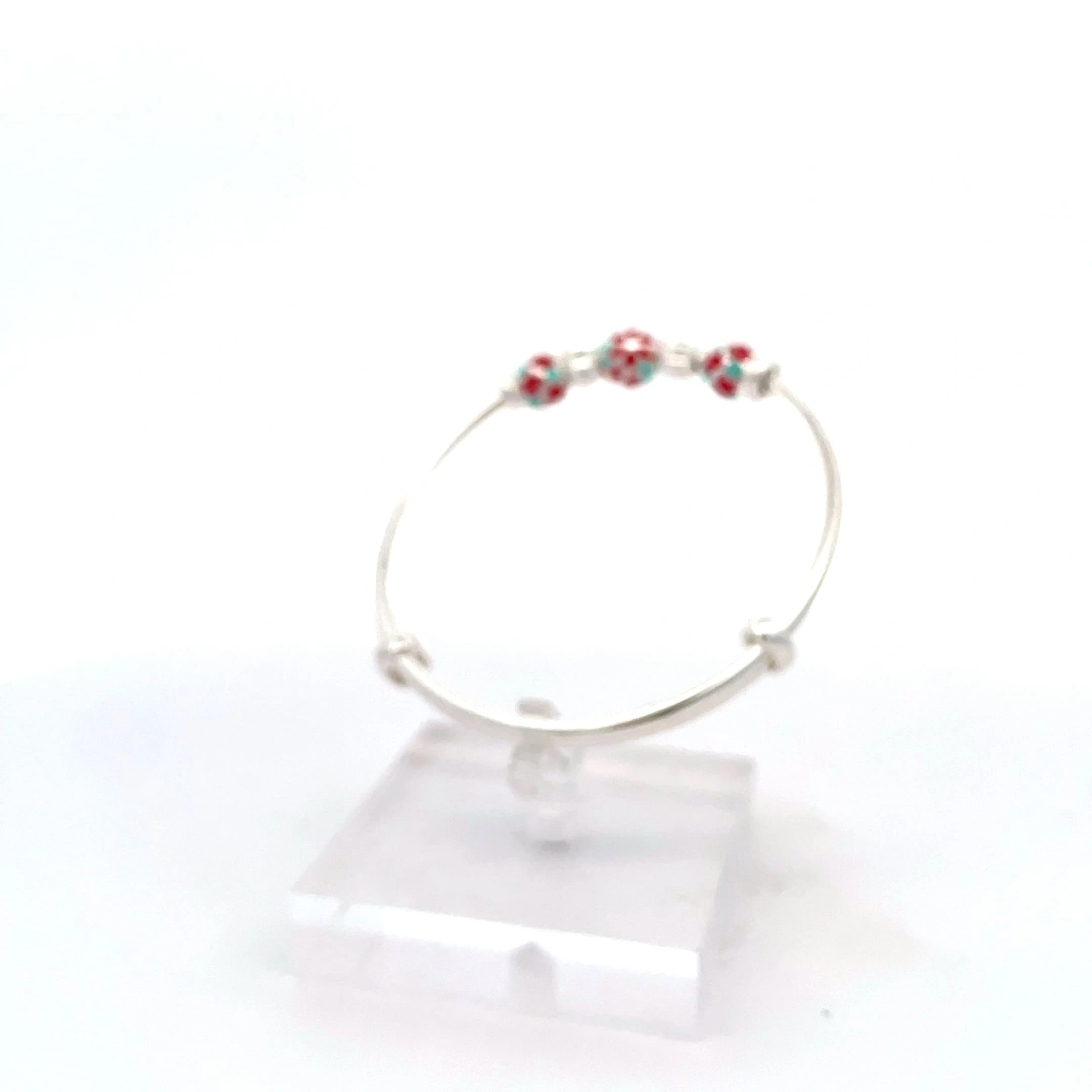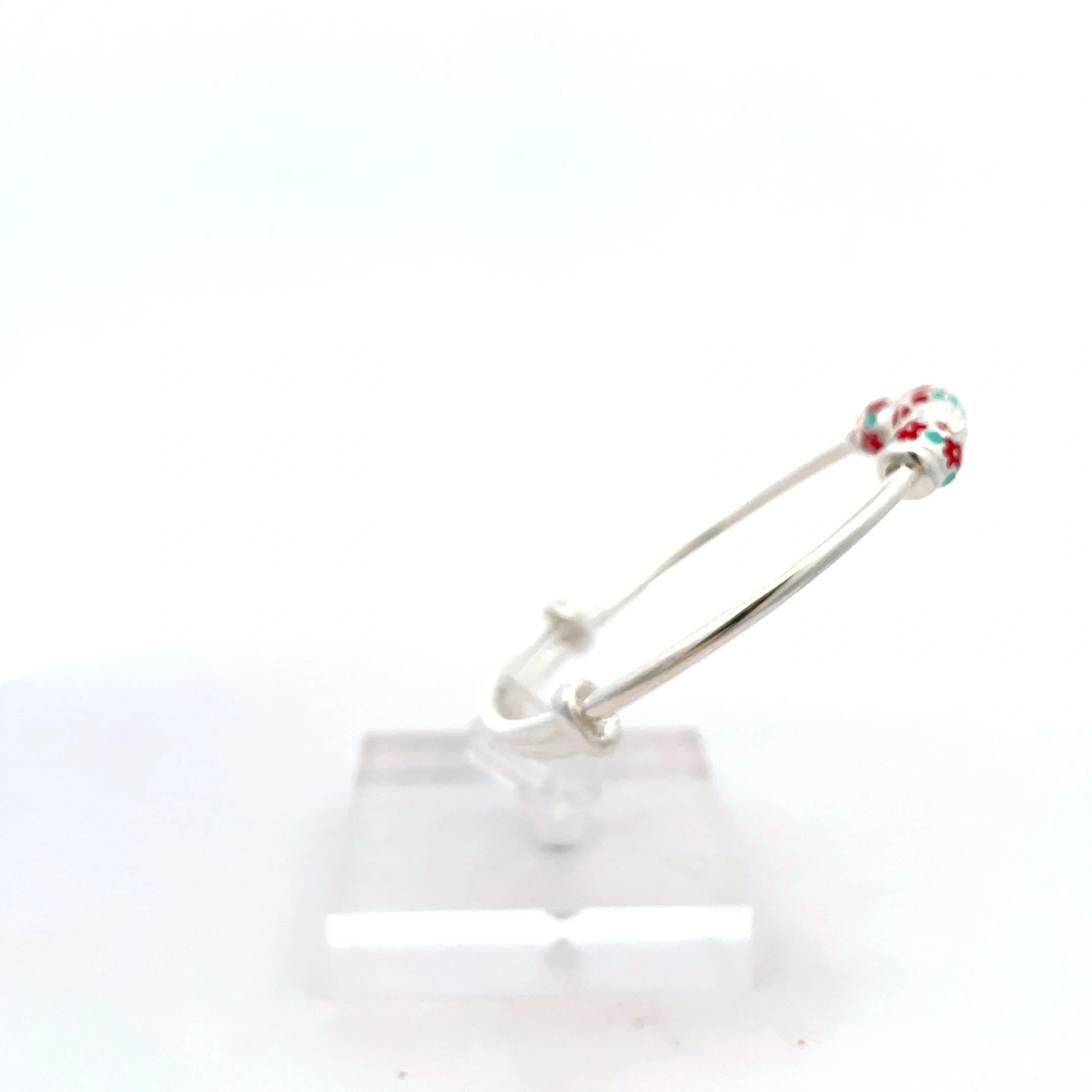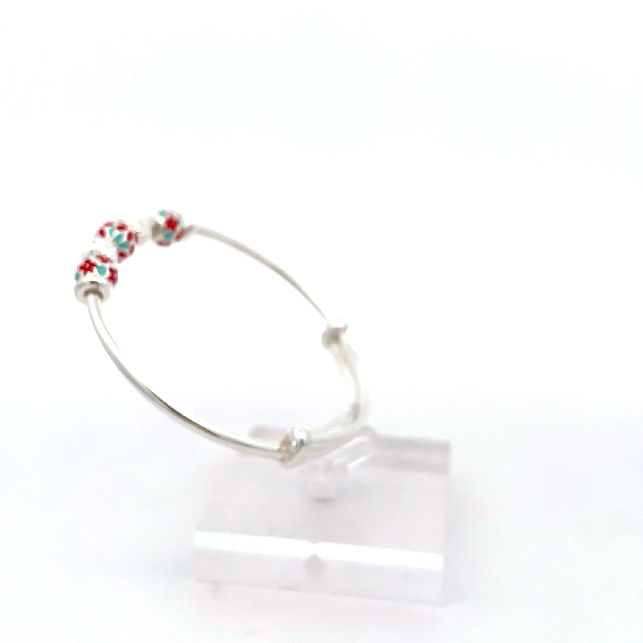Gelang perak 925 gah dengan rekabentuk bunga enamel merah dan hijau, meraikan gaya bersemangat dan mencabar.