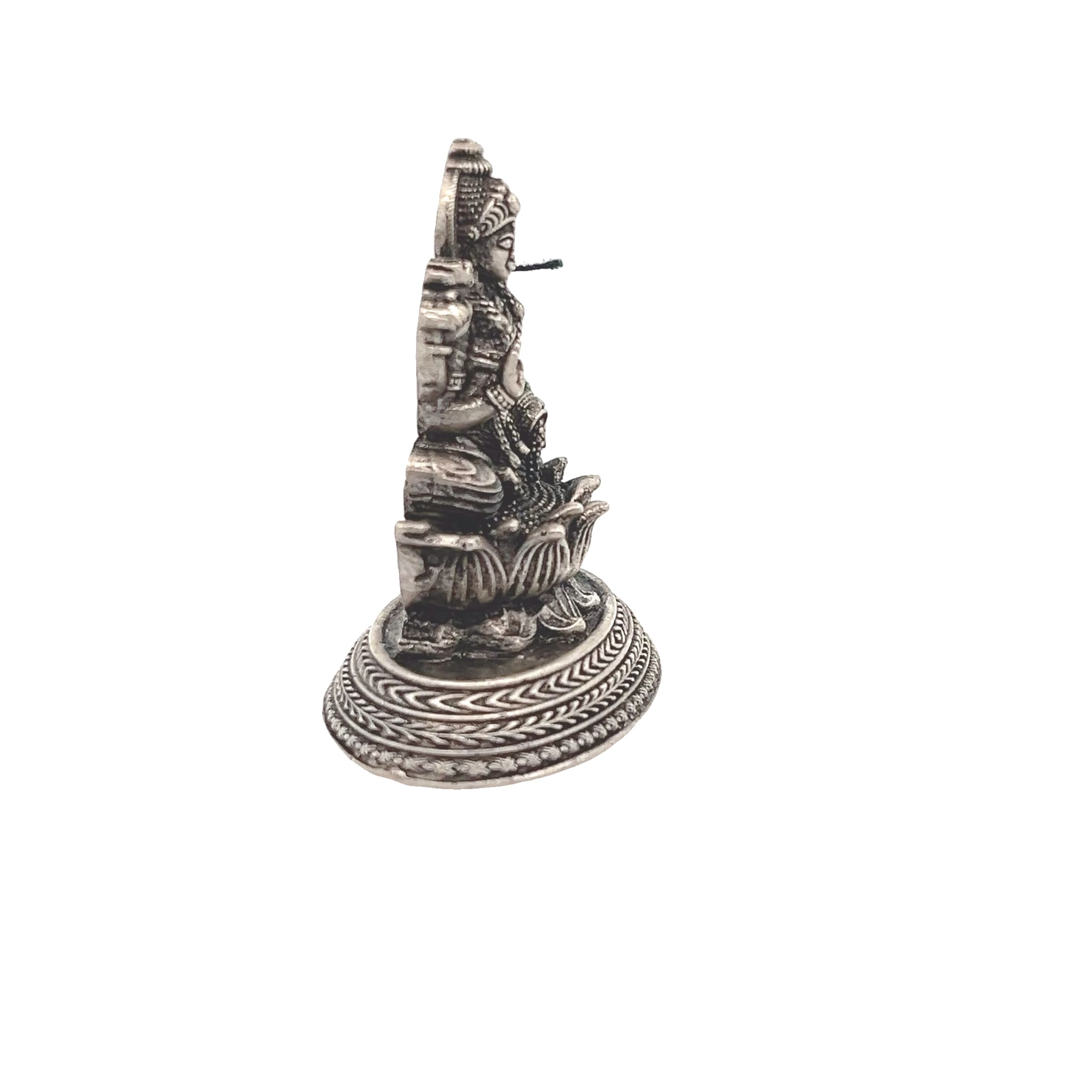 A beautifully oxidised silver idol of Goddess Lakshmi, the embodiment of wealth, prosperity, and divine grace.