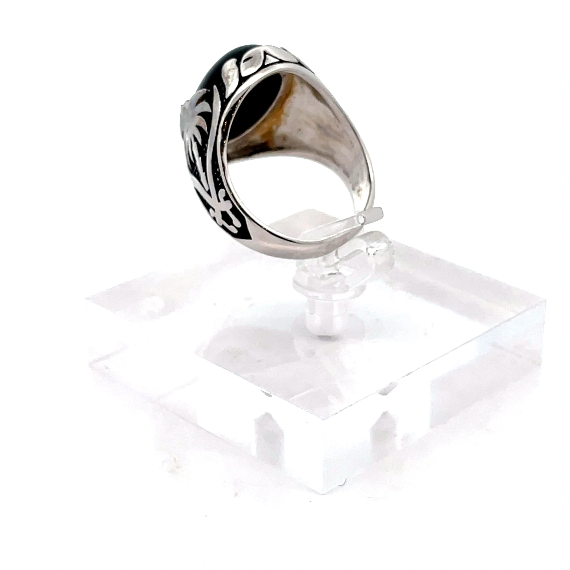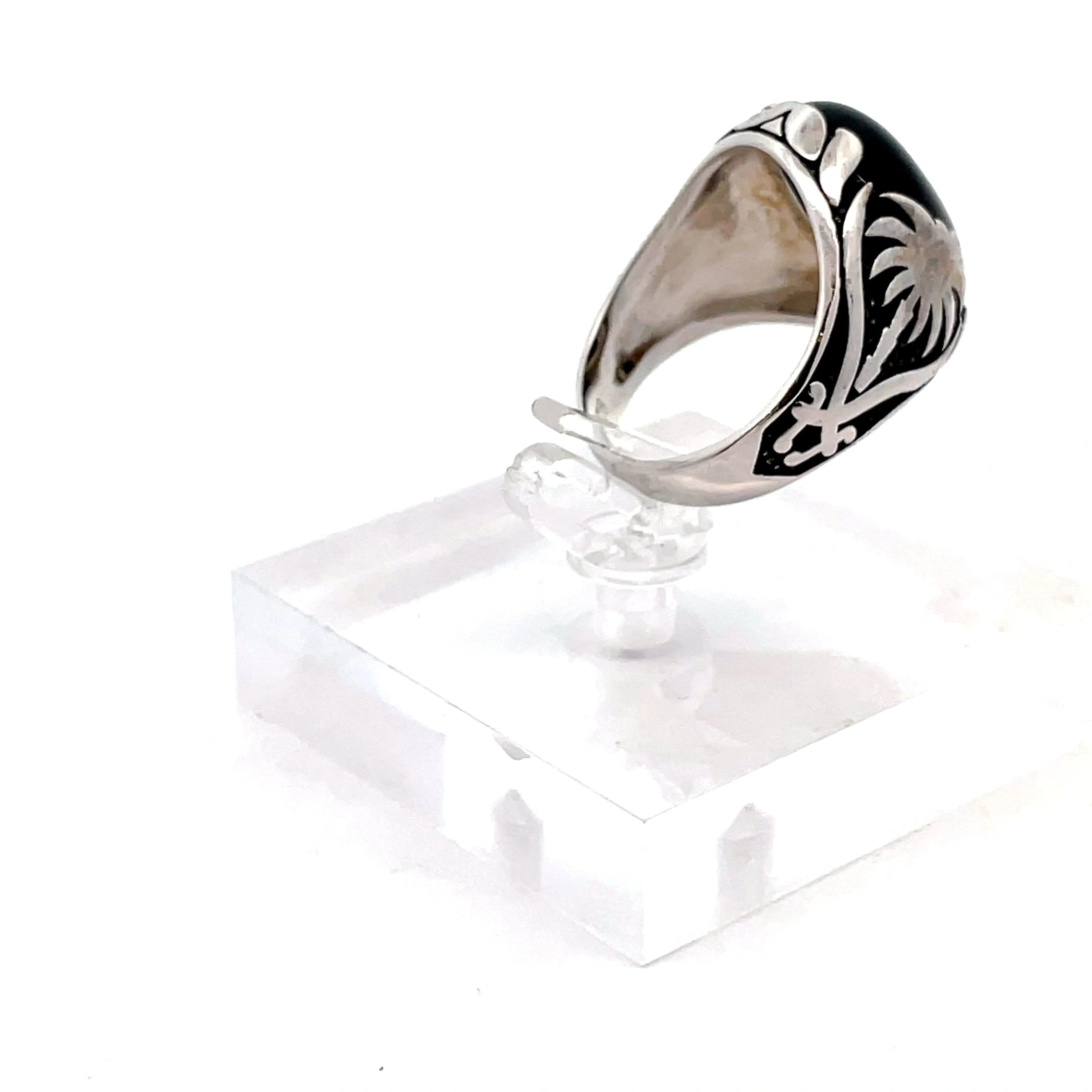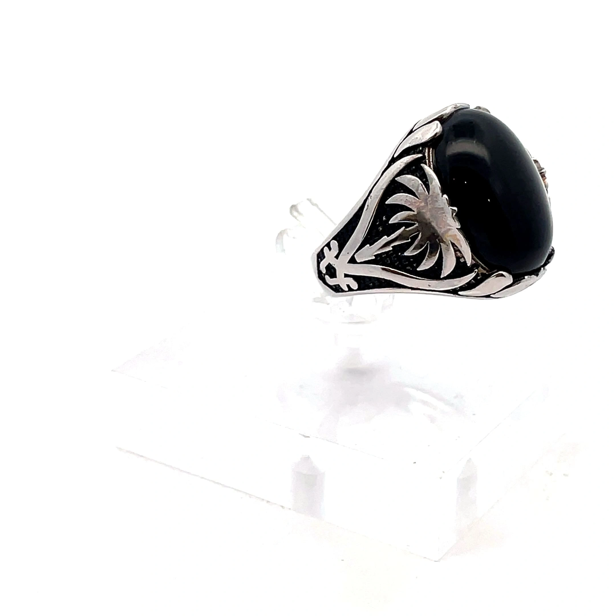 The Obsidian Knight Silver Ring, crafted from 925 silver and weighing 7.78g, features a striking obsidian gemstone that adds mystery and strength to any ensemble.