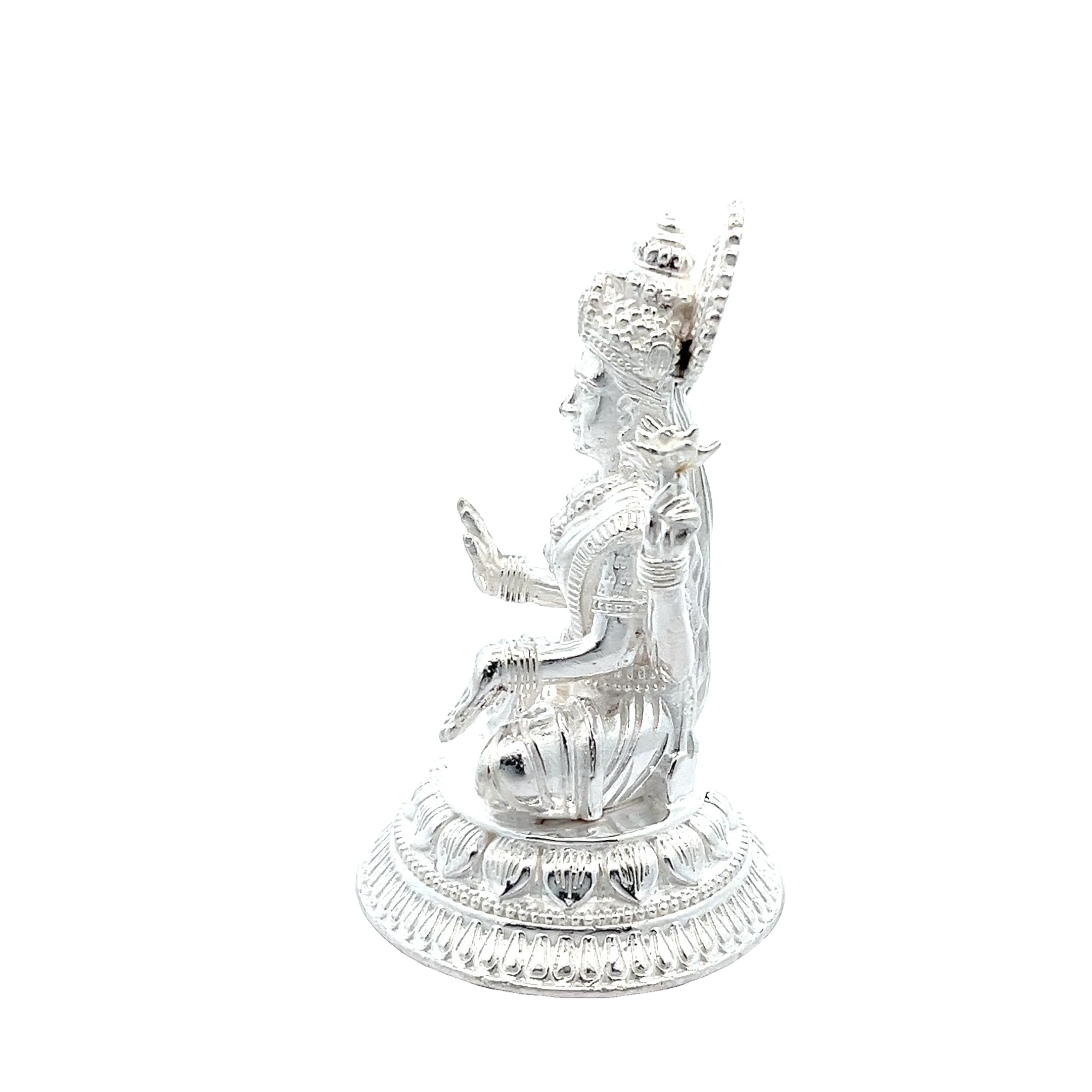 A beautifully sculpted silver idol of Goddess Lakshmi, seated in divine grace, symbolising abundance, fortune, and prosperity in your sacred space.