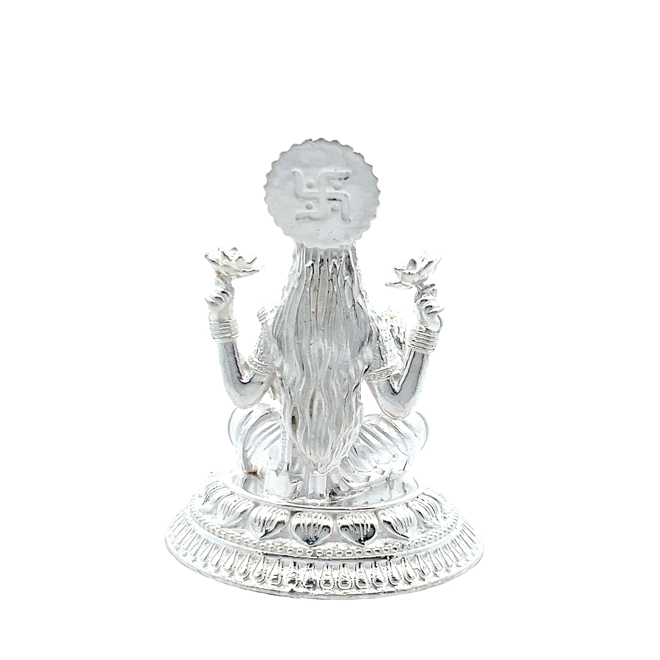 Invite the blessings of wealth, harmony, and well-being into your home with the Radiance of Lakshmi Goddess Idol. Elegantly seated on a lotus pedestal, the Goddess holds twin lotuses in her upper hands, while her lower palms bless devotees with divine prosperity and spiritual upliftment. Meticulously detailed in shining silver, this idol reflects purity and positive energy—ideal for puja rooms, festive décor, or as a thoughtful gift during Deepavali and auspicious occasions. Let her serene aura bring light and abundance to every corner of your life.