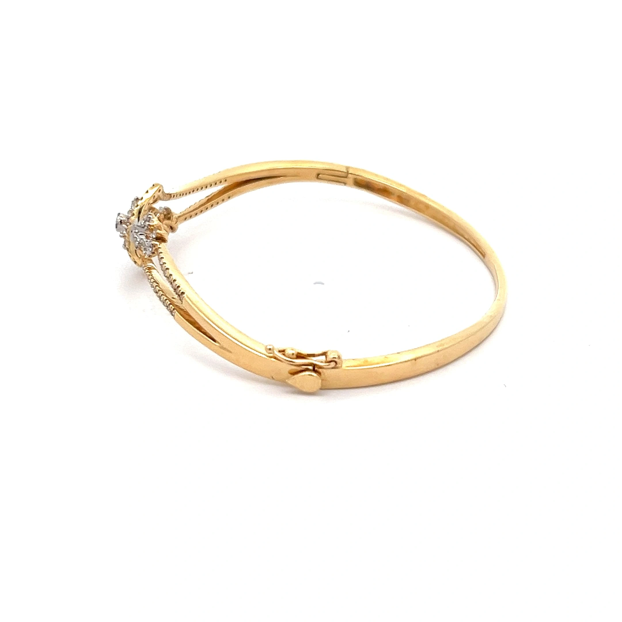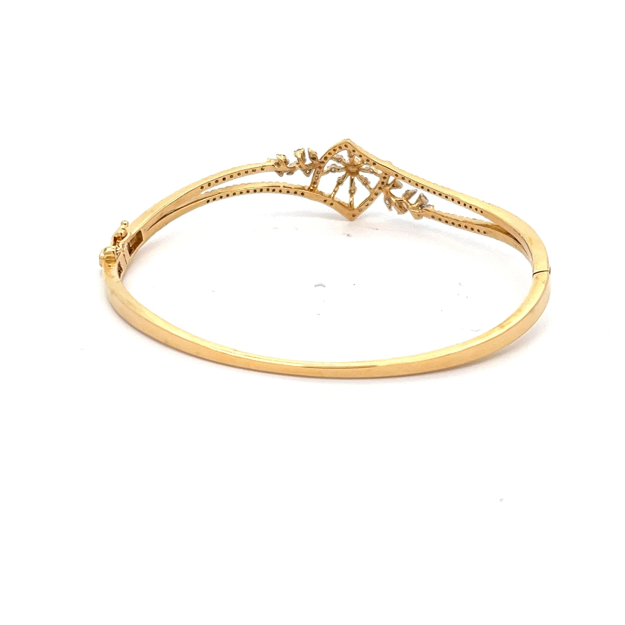 Gelang lebar 18 karat emas dengan tekstur unik dan kira-kira 4.5 karat berlian berkilau. Elegan dan memikat.