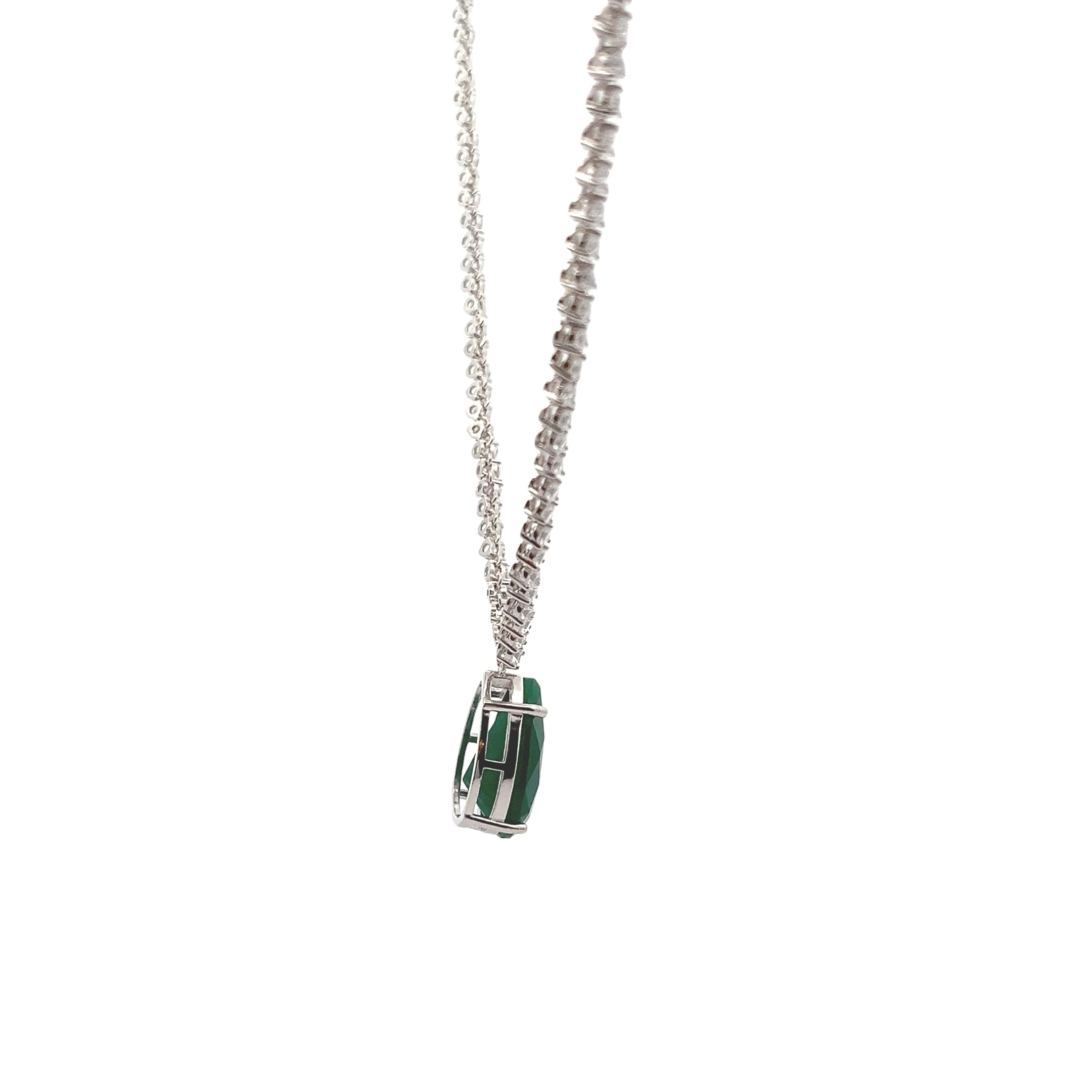 Kalung ini menampilkan batu peridot yang segar, memberikan sentuhan warna dan keanggunan pada gaya anda.