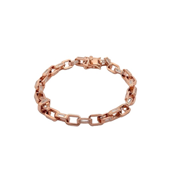 The Rose Starlight Bracelet is where modern elegance meets cosmic charm. Crafted from sterling silver and adorned with luxurious rose gold plating, this bracelet features sleek open links accented by baguette-cut stones that twinkle like stars across a twilight sky. Graceful yet bold, it’s a radiant addition to your look, ready to accompany you from sunlit mornings to starlit evenings.