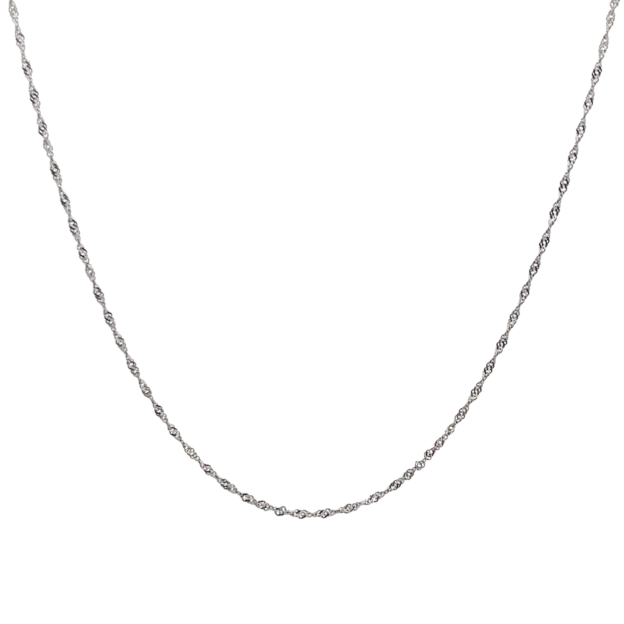 The Singapore Twist Chain features an intricate, diamond-cut design where links are twisted and woven together, resulting in a shimmering effect with natural fluidity. Its unique construction ensures it glimmers as it moves, making it a beautiful companion for pendants or a graceful solo piece. Ideal for both everyday wear and special moments.