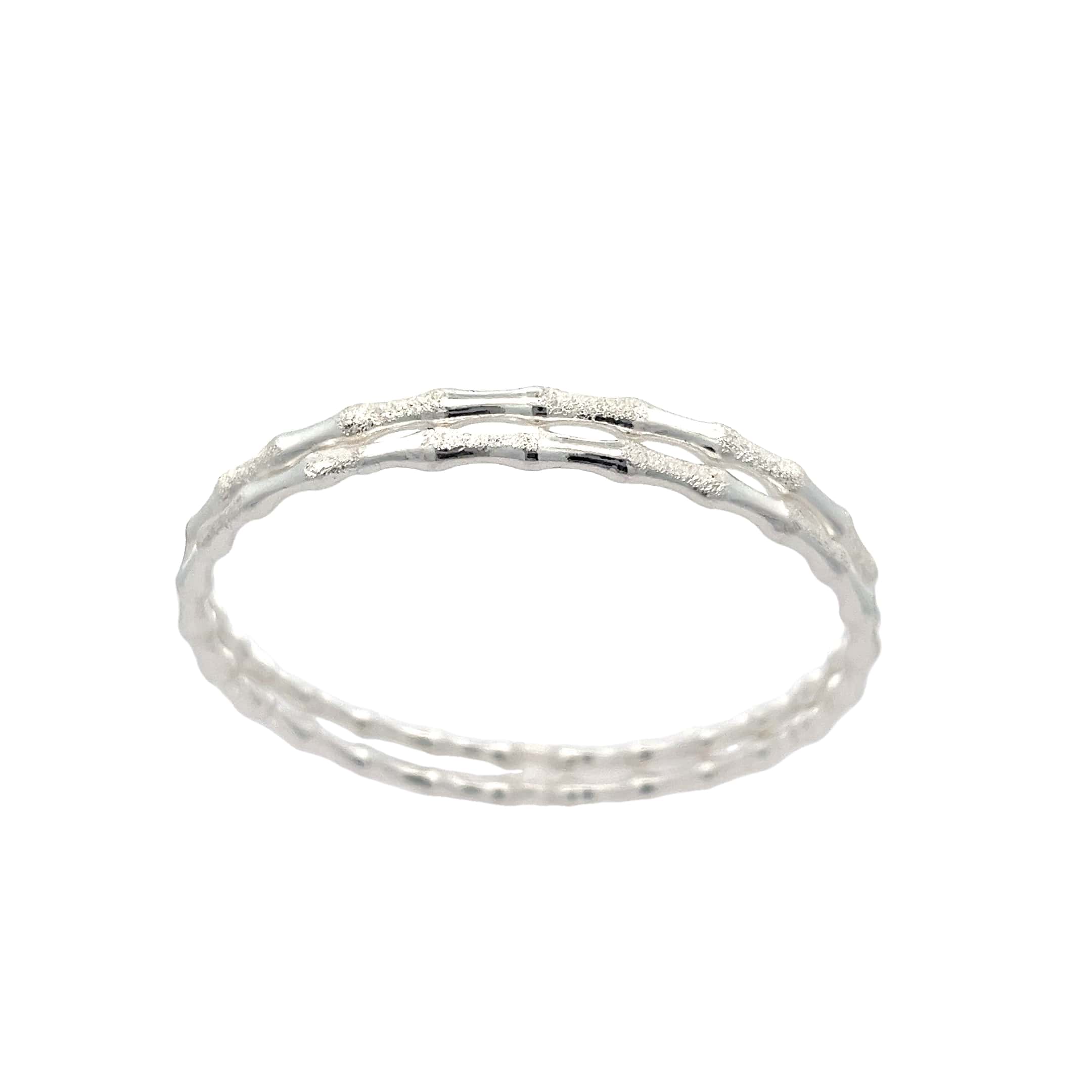 Crafted from high-quality silver, this bangle promises lasting shine and resilience, standing the test of time. Its bold design is ideal for those who appreciate a piece that makes a statement while maintaining refined beauty. Whether worn solo or paired with other pieces, the Frosted Fable Silver Bangle offers versatile sophistication, making it the ideal accessory for both casual and formal occasions.