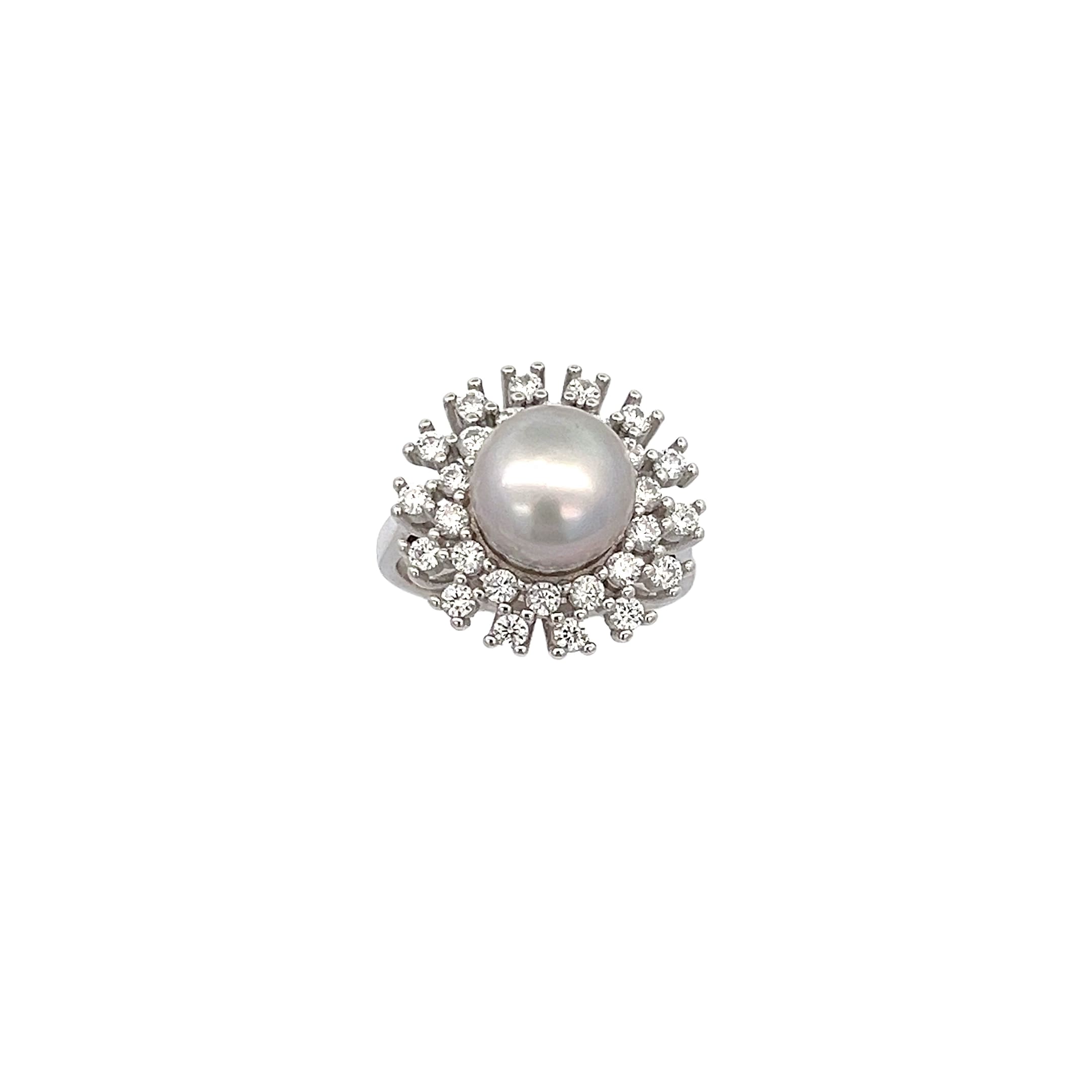 A pearl-centred masterpiece crowned in a halo of glistening stones.