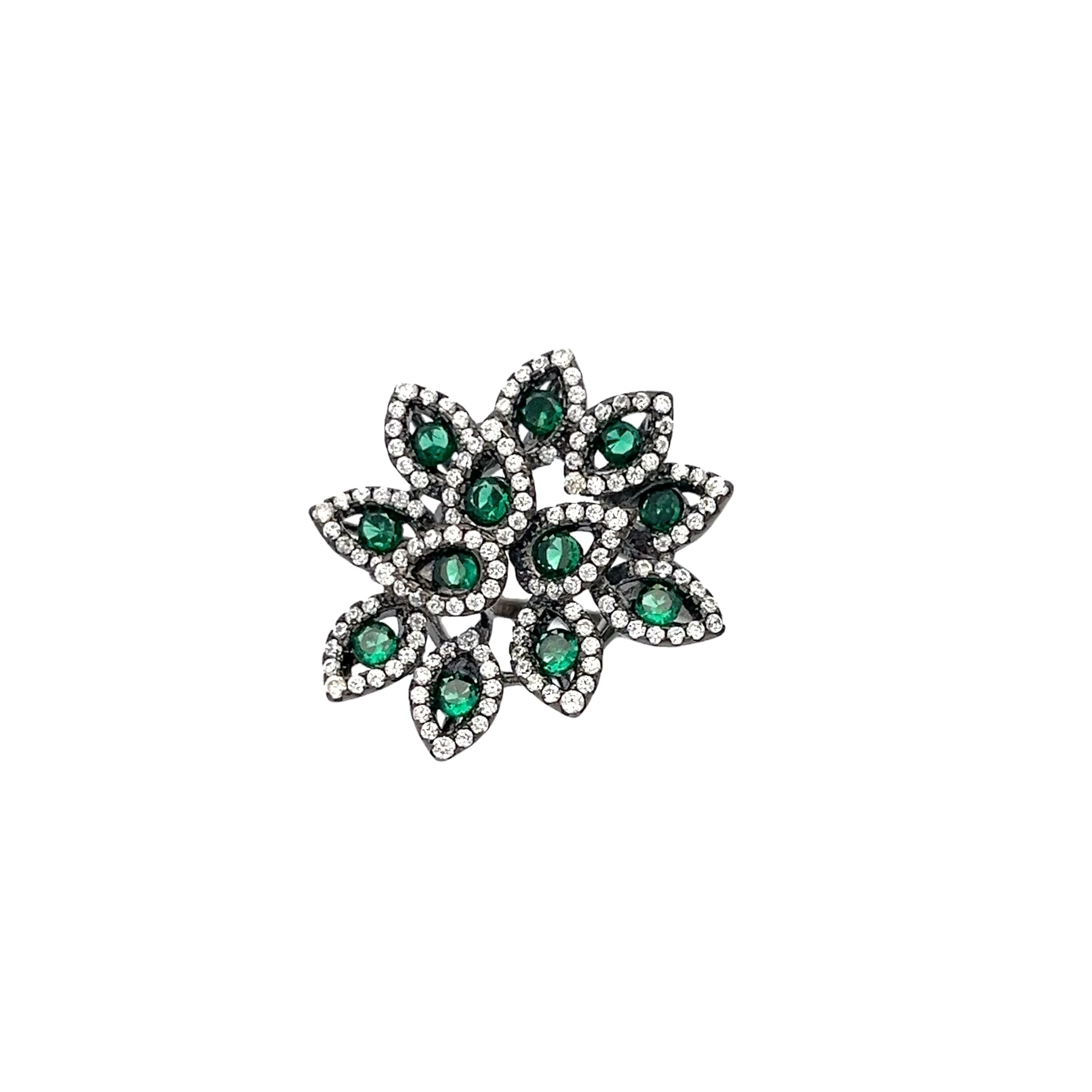 The Zaria Ring blooms with nature-inspired charm, featuring petal-like emeralds outlined with radiant pavé stones. Whimsical yet glamorous, this floral cluster ring is made for the modern princess who finds magic in every moment.